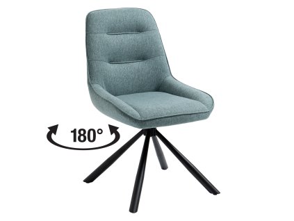 Jídelní židle se světle modrým textilním potahem a černou kovovou konstrukcí. Otočná o 180°. Výška sedu 47 cm, nosnost 120 kg. Moderní a praktický doplněk pro váš interiér.