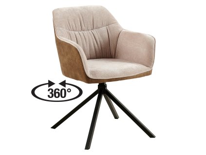 Jídelní židle, textilní potah, barevné provedení hnědá/béžový samet kovová konstrukce, barevné provedení černá otočná o 360 stupňů.