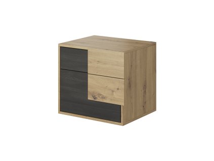 Noční stolek se dvěma zásuvkami. Barevné provedení je v kombinaci dub artisan/černá mat. Nábytek je vyroben z kvalitního lamina ohraničeného ABS páskou. Rozměry : 48 x 71 x 40,6cm.