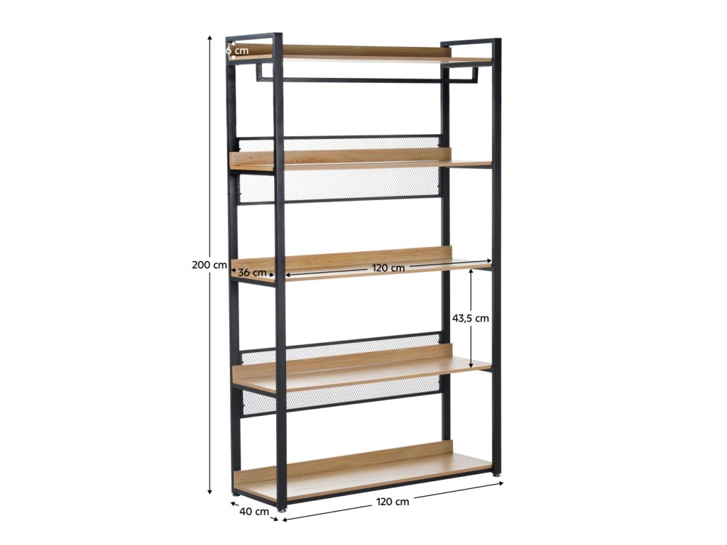 - Rozměry: 120×40×200 cm, police 1,5 cm tlusté