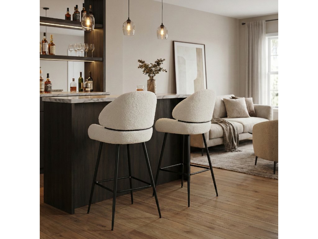 Barová židle SANAKO TYP 2 kombinuje moderní design s vysokou odolností látky Bouclé.
