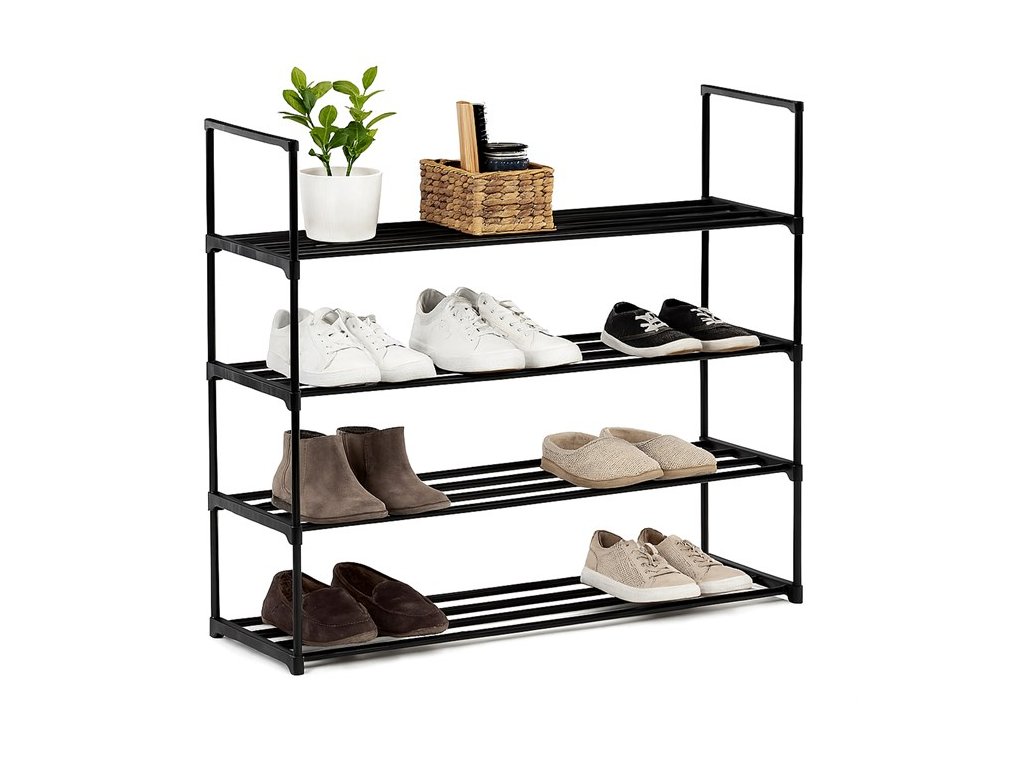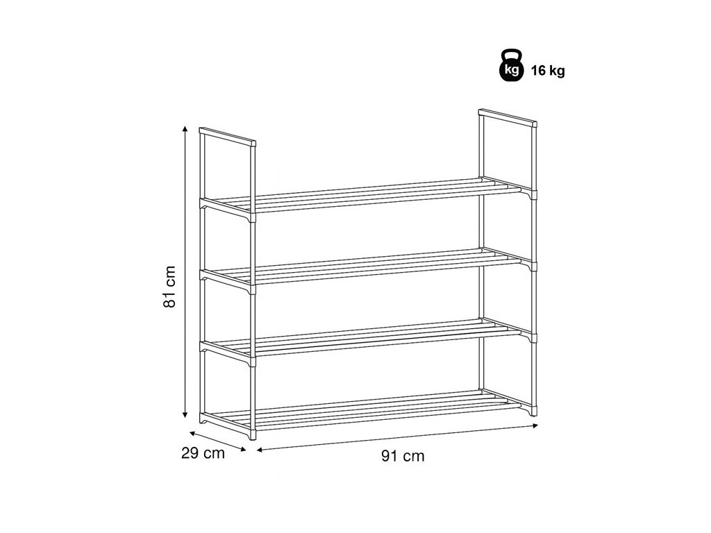 Prostorný botník značky Autronic nabízí elegantní a praktické řešení pro uskladnění obuvi. Černá kovová konstrukce s čtyřmi policemi pojme velké množství párů bot, takže je ideální i pro větší domácnosti. Díky otevřenému designu je obuv snadno přístupná a dobře větraná. Botník je stabilní, lehký a snadno přemístitelný, což ho činí vhodným doplňkem do předsíně, šatny či garáže.Doplňkové parametry