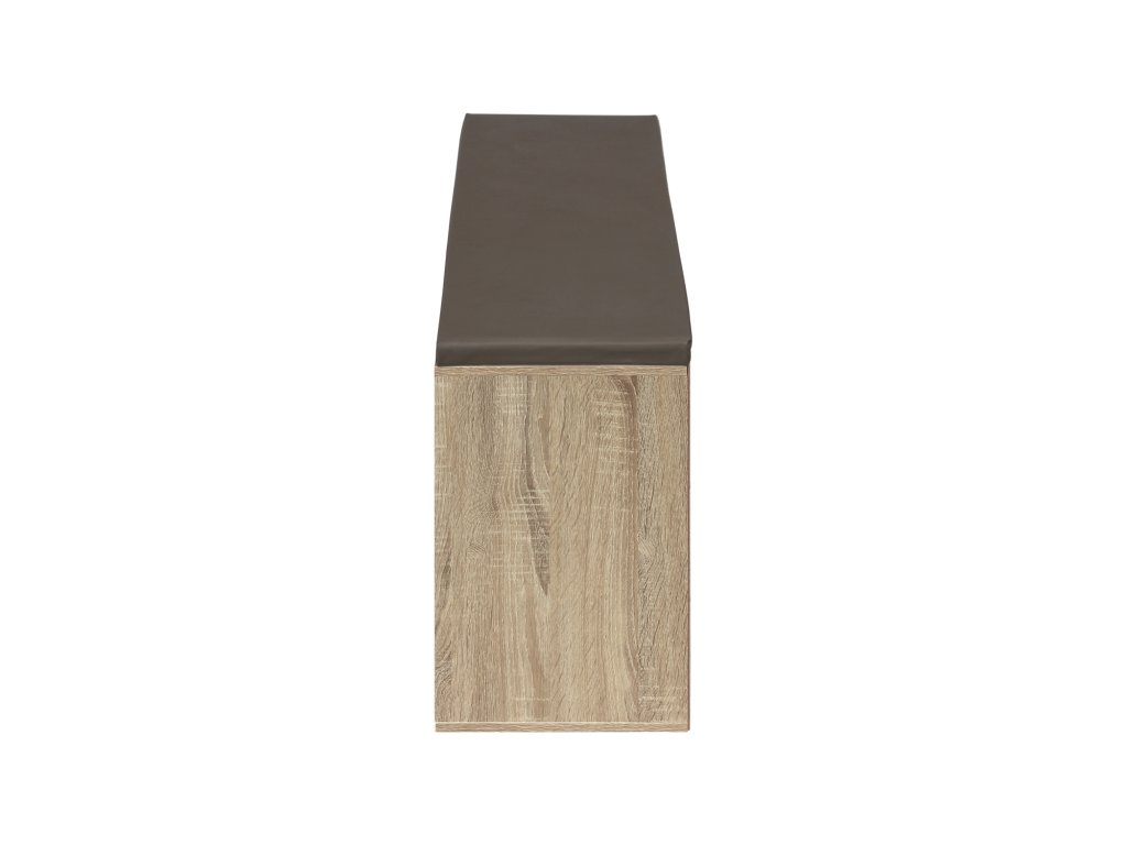barevné provedení dub sonoma, polstrovaný sedákdeset polic, potah sedáku kůže – imitace, barevné provedení hnědá