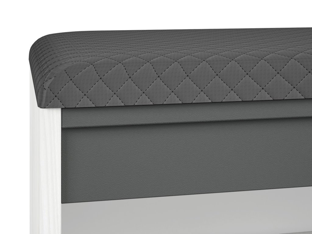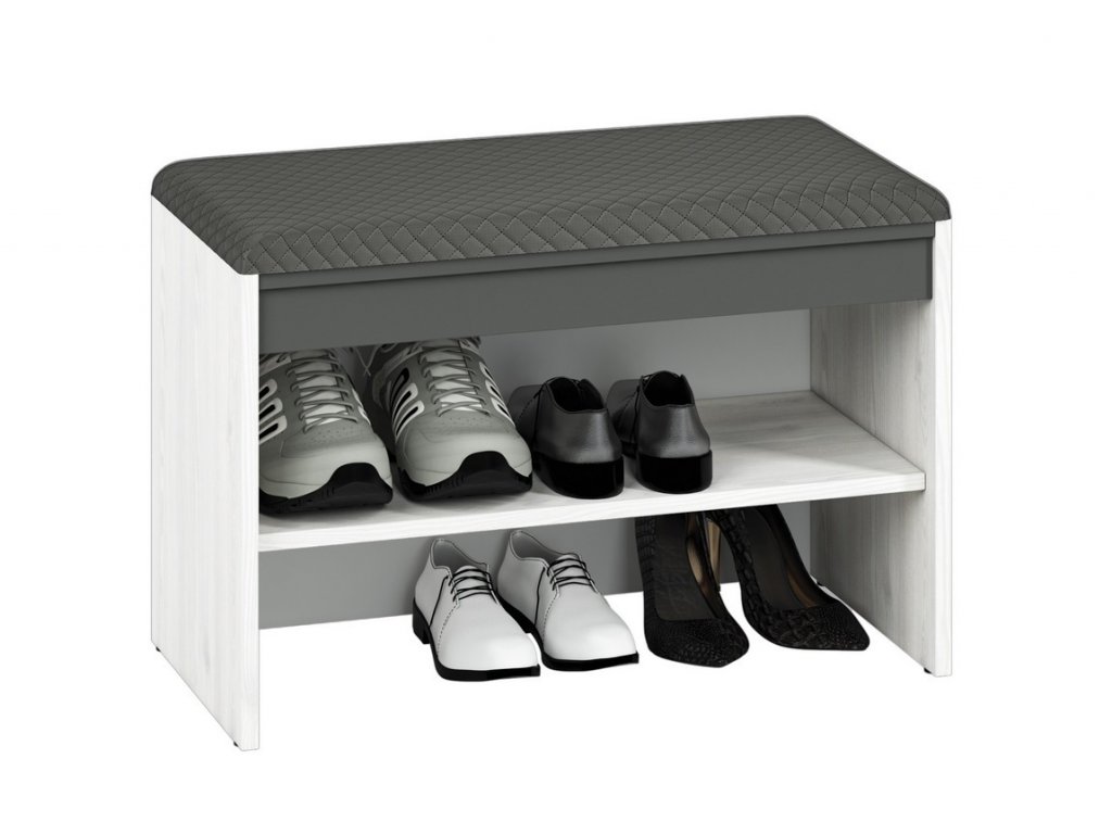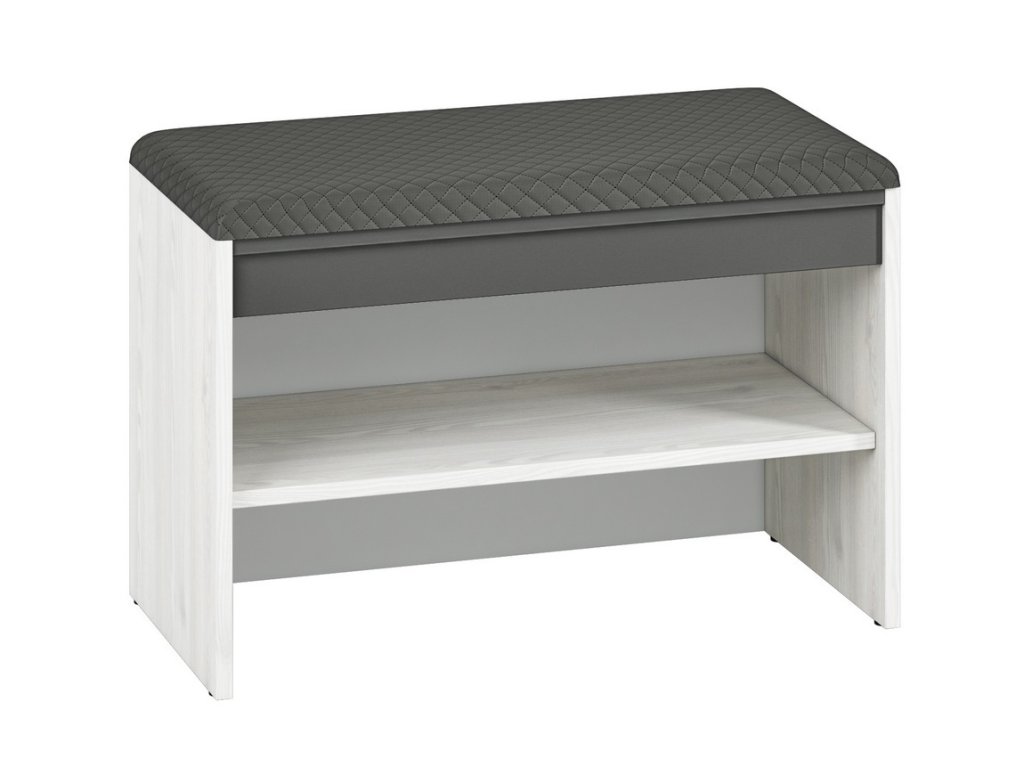 Botník s policí a polstrovaným sedákem je vyroben z desky LTD v kombinaci barev borovice sněžná/antracit. Dodáváme v demontovaném stavu.Doplňkové parametry