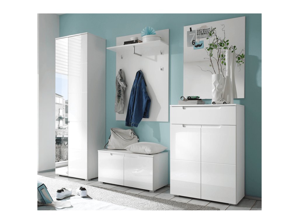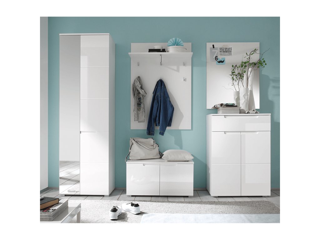 SPACE botník z předsíňové sektorové sestavy.Bílý korpus, přední díly MDF bílý extra vysoký lesk.