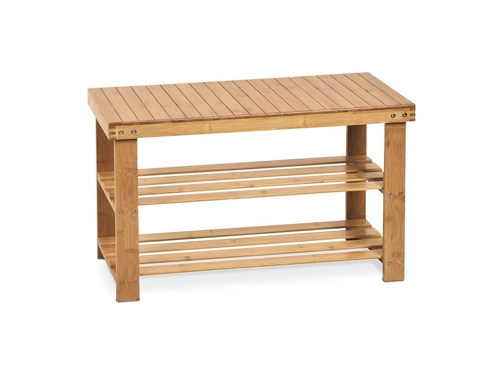 Praktický botník s dvěma rošty, který zároveň slouží i jako sedací lavice. Díky svým rozměrům má ideální ložnou plochu na uložení bot, ale prostorově se vejde i do menších předsíní i hal. Kostra botníku, police i plocha na sezení je z masivního bambusu v přírodním odstínu a lakovaná transparentním lakem. Nosnost na sezení je 90 kg, nosnost jednotlivých polic je 6 kg. Dodáváno v demontu.S tímto botníkem bude přezouvání vždy pohodlné a bezpečné.