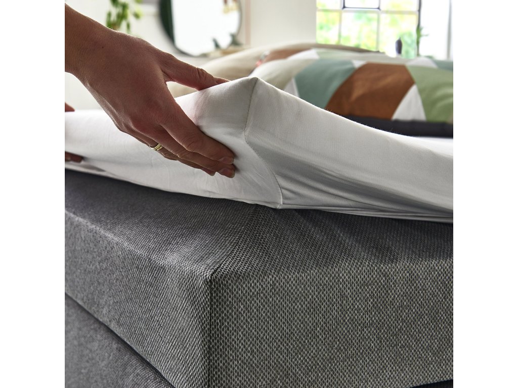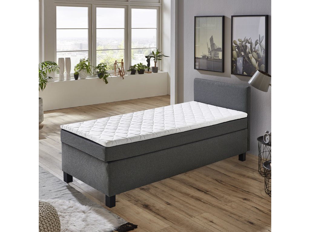 Kontinentální postel, potah 100% polyester, barevné provedení stříbrná nohy plast, barevné provedení černá základna s jádrem z bonell pružin o výšce cca 11 cm, celková výška základny včetně nohou cca 39 cm, výška nohy cca 10 cm základna polstrována polyesterovou vatou, hustota cca 120 pružin na metr čtvereční matrace s jádrem z bonell pružin o výšce cca 11 cm, výška matrace včetně krycí matrace cca 17 cm bílá krycí matrace s komfortním pěnovým jádrem o výšce 4 cm a s prošívaným potahem ze 100% polyesteru krycí a základní matrace jsou pevně sešité robustní rám z dřevotřískové desky s hranoly z masivního dřeva vnitřní strany potaženy netkanou textilií, výška sedu 56 cm hloubka čela cca 7 cm, výška čela 87 cm, zadní strana čela potažena netkanou textilií doporučená nosnost do 120 kg.Doplňkové parametry
