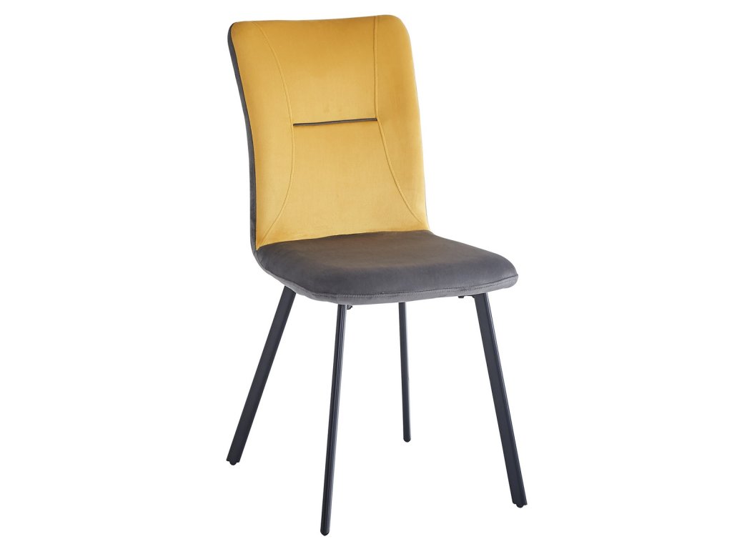 Elegantní čalouněná jídelní židle - křeslo. Konstrukce je z kovu černé barvy. Čalounění židle je z potahové látky ( aksamit 86 ) v granátově modré barvě.