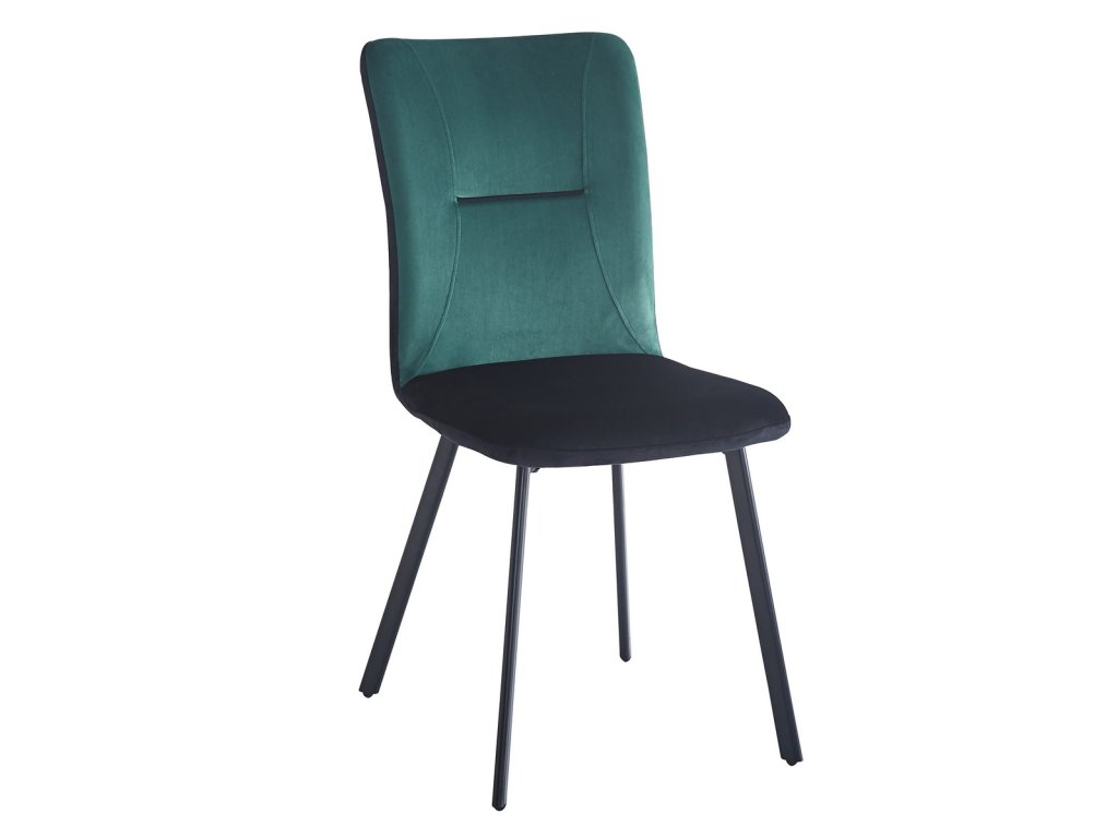 Stylová čalouněná židle v moderním stylu. Konstrukce je v černé barvě. Čalounění sedáku je potaženo látkou v černé barvě, opěradlo je v barvě zelené . Výška sedu je 48,5 cm. Pohodlí a elegance do každého interiéru. Dodáváme v demontovaném stavu.Doplňkové parametry