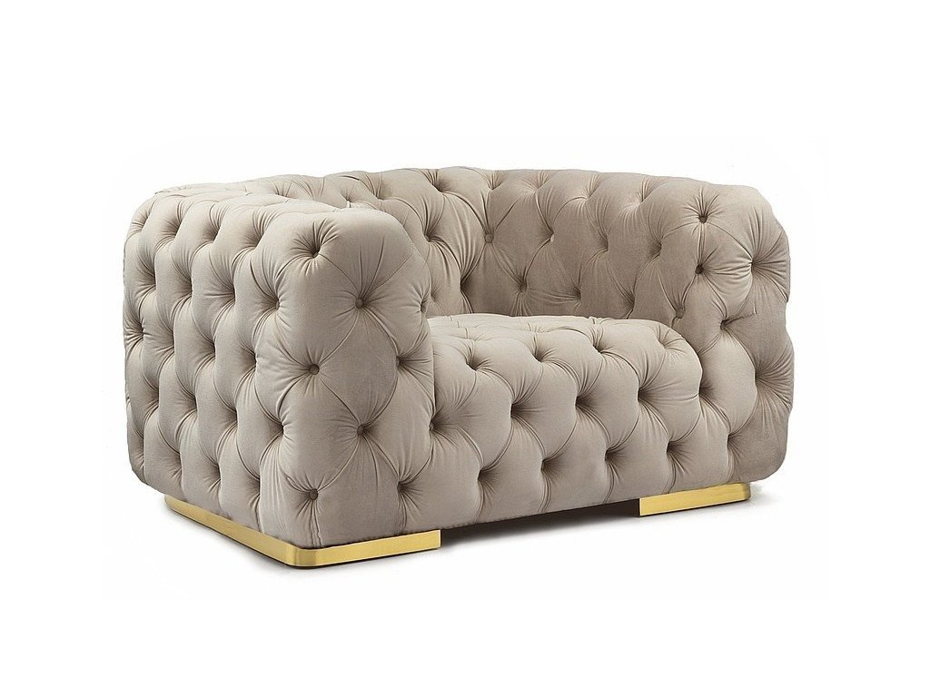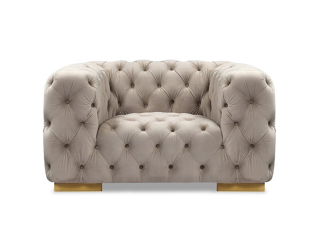 Křeslo CHASS 1 VELVET v béžové barvě (TAP.199) vás okouzlí luxusním anglickým stylem.Sametové čalounění z látky velvet aksamit doplňují zlaté kovové nožky (výška 6 cm).