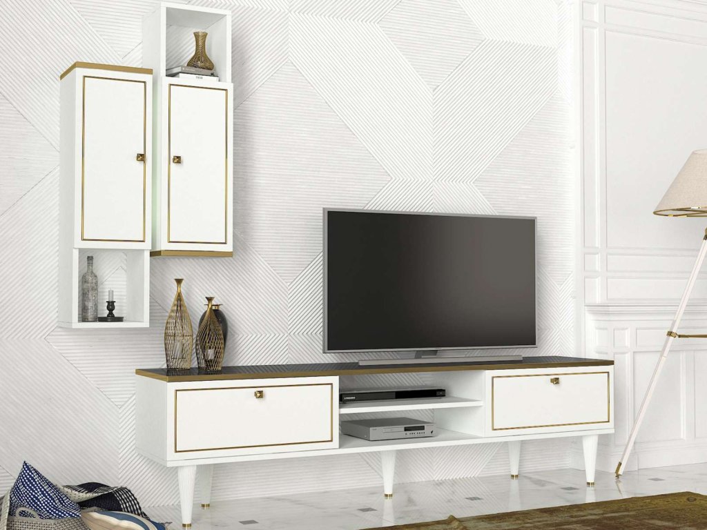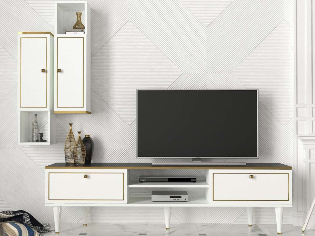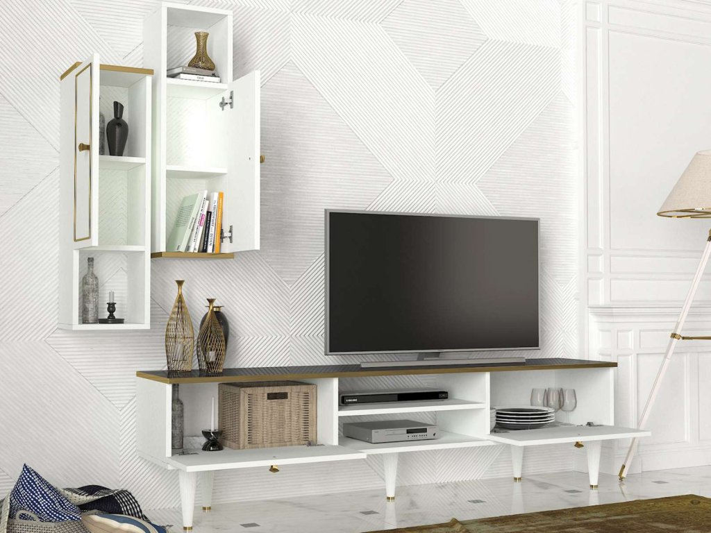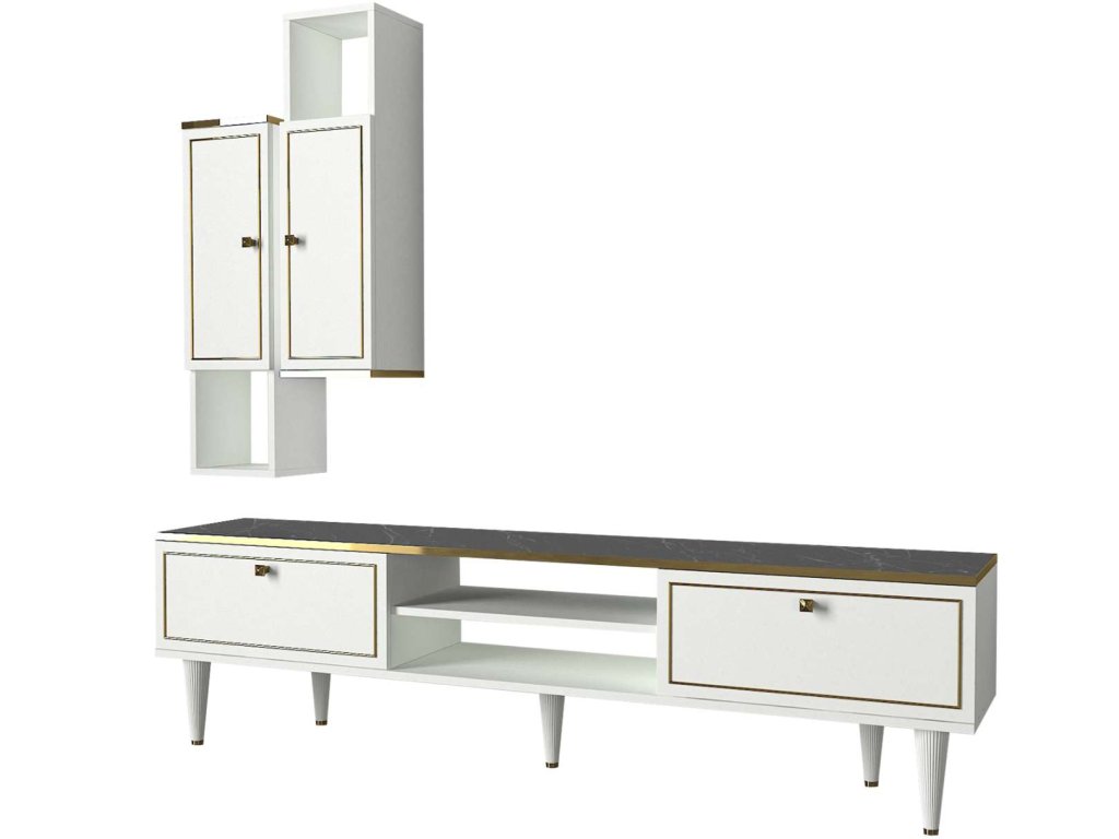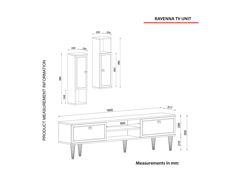 - Sestava obsahuje: TV stolek (180 × 31,7 × 50,5 cm) a 2 nástěnné police (25 × 22 × 88,6 cm)