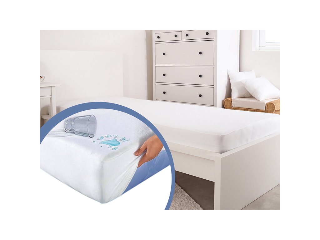 materiál: horní vrstva froté 70% bavlna, 30% polyester, dolní vrstva polyuretan barevné provedení bílá obšito gumou, pratelné do 60 °CDoplňkové parametry