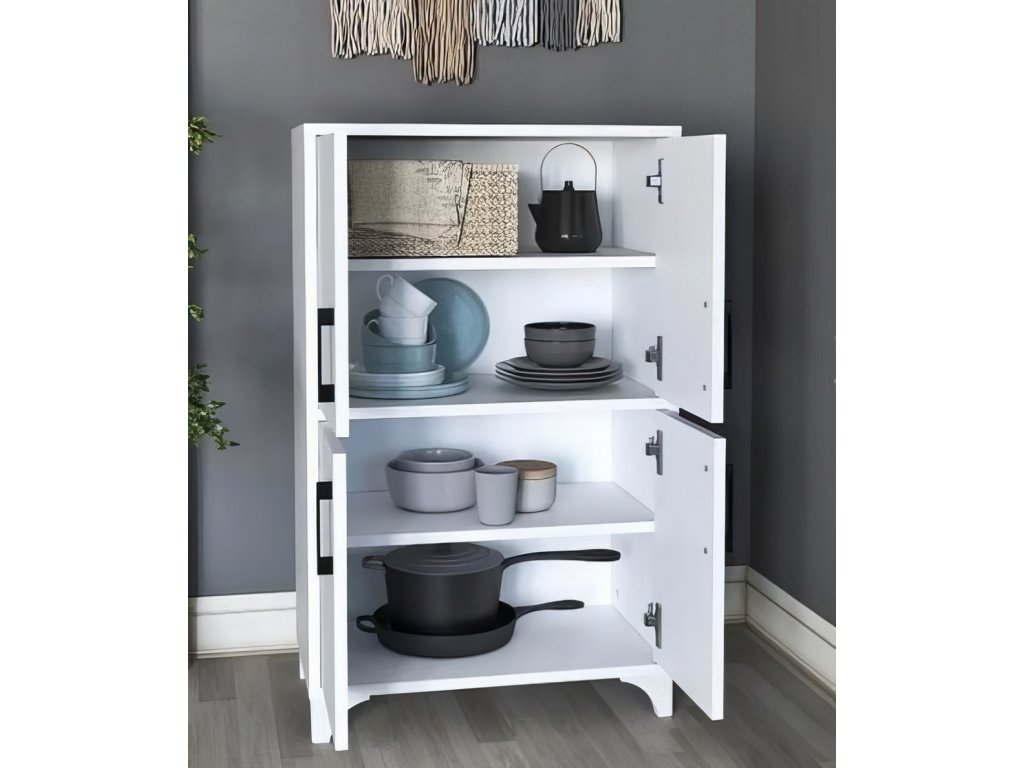 Čtyřdveřová nízká komoda je vyrobena z kvalitní desky LTD nenáročné na údržbu, v barevném provedení bílá. Tloušťka materiálu - 18 mm. Dodáváme v demontovaném stavu.Doplňkové parametry