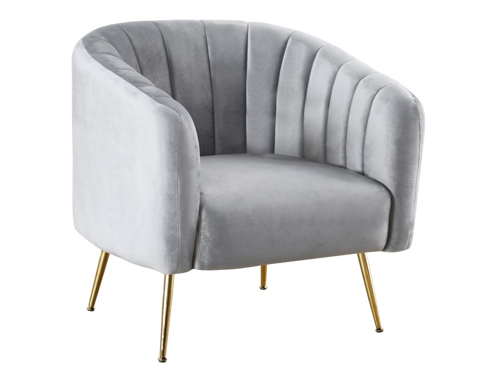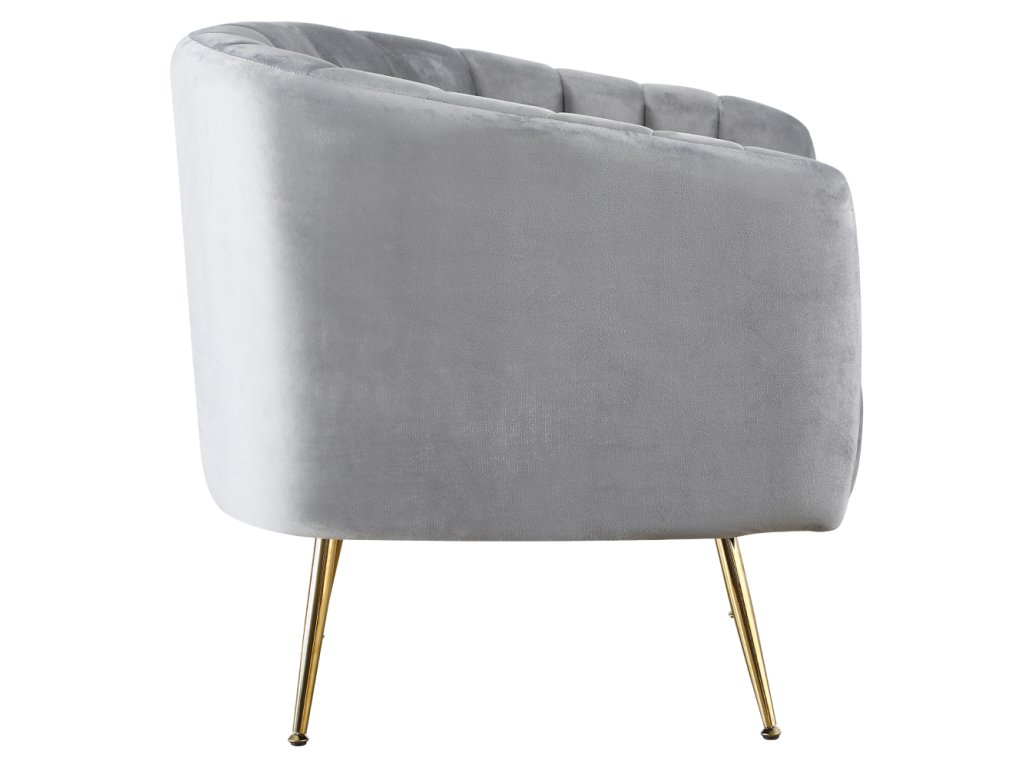 Designové křeslo BAGY v šedé Velvet látce se zlatými kovovými nohami zaujme elegancí i pohodlím. Kvalitní zpracování a dekorativní prošívání oživí každý interiér.✔ Velvet látka / kov gold chrom, 95 000 Martindale