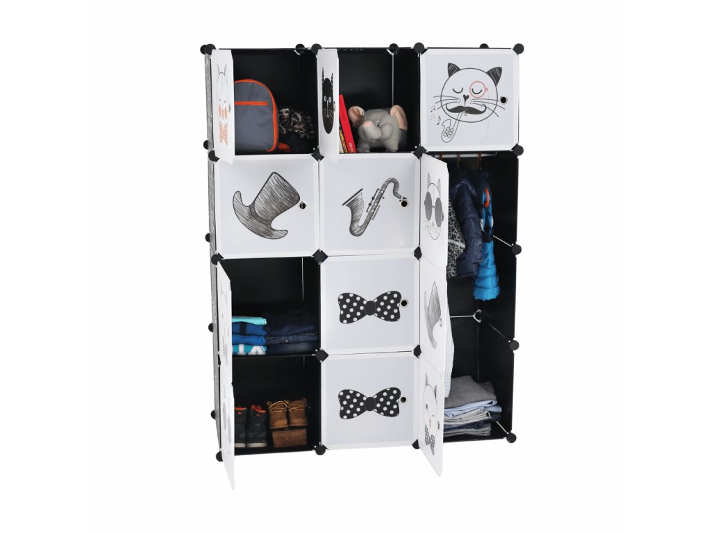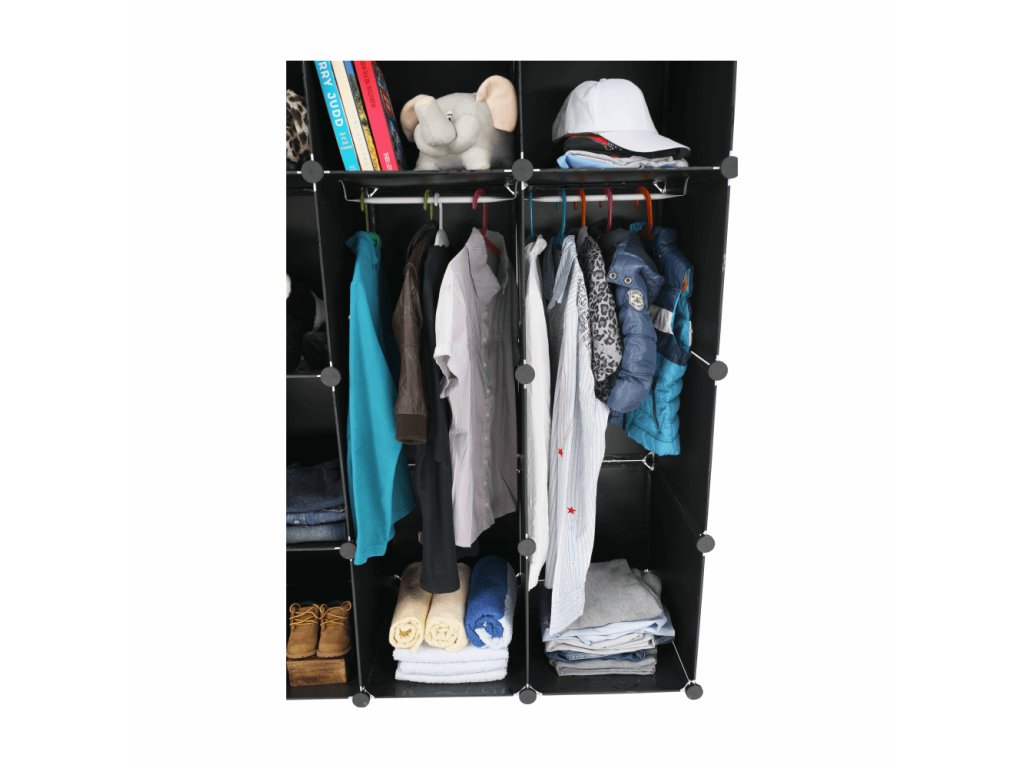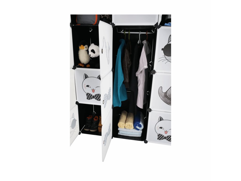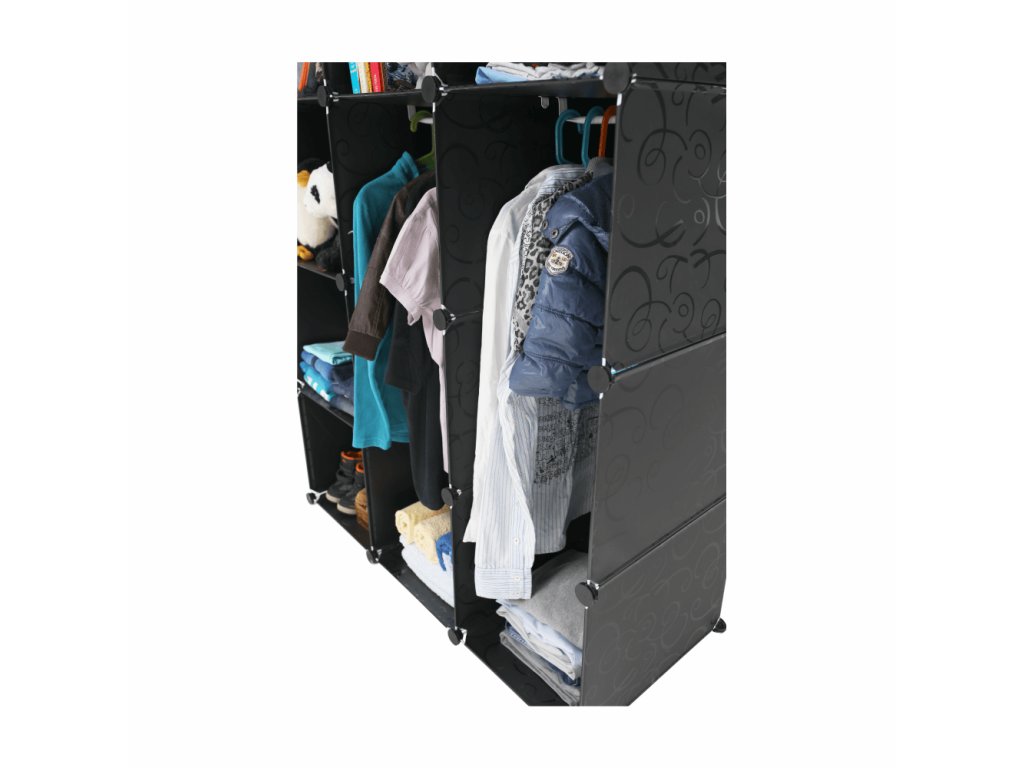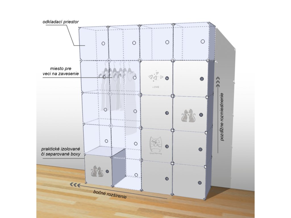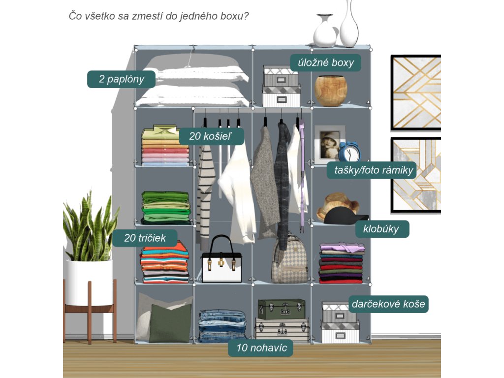 Výhodou modulárního typu nábytku je to, že si skříň můžete smontovat dle vlastních potřeb. Vnitřní rozložení skříně nemusí být takové jako na obrázku, věšákovou i policovou část si umíte rozvrhnout podle toho, jak právě potřebujete.