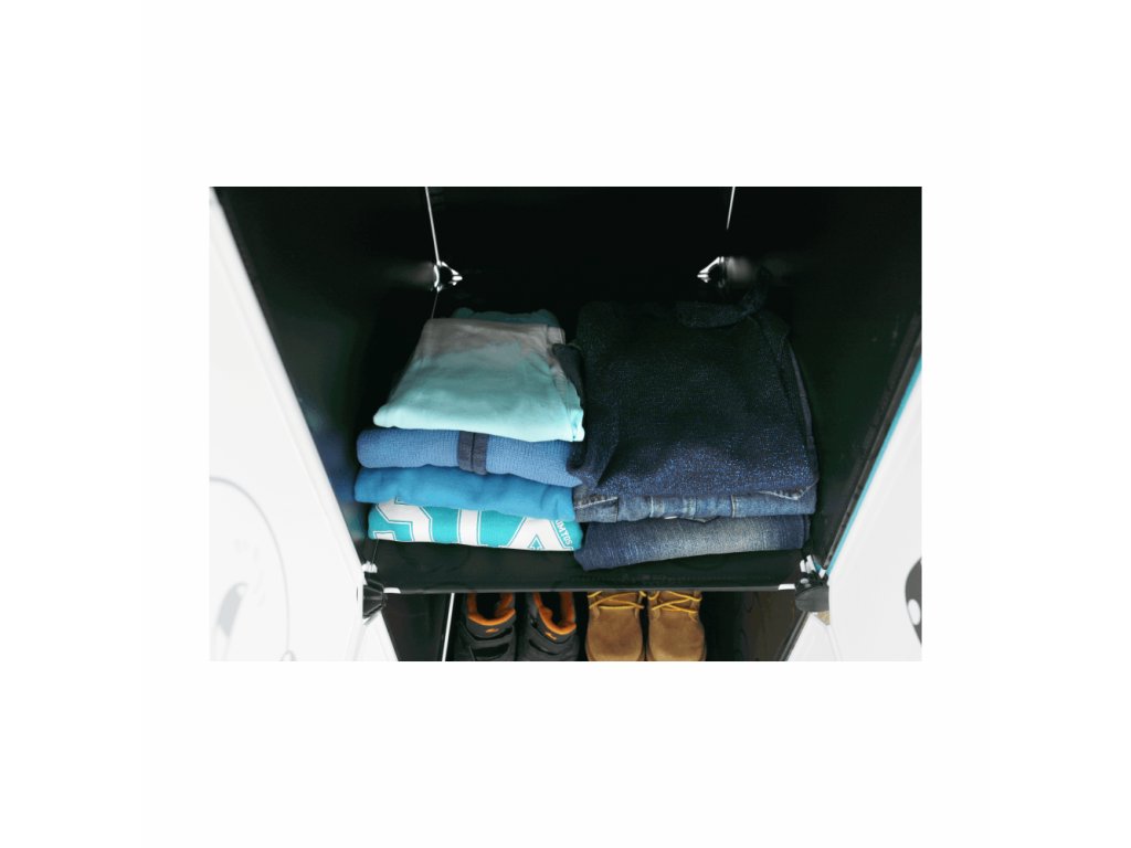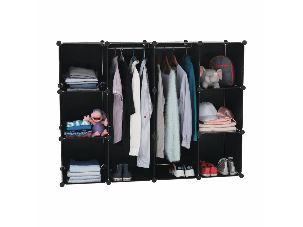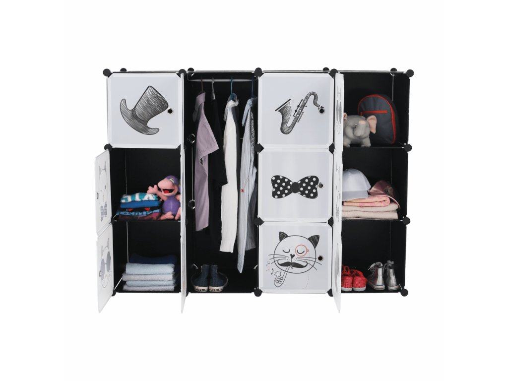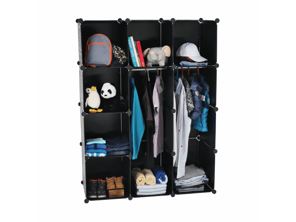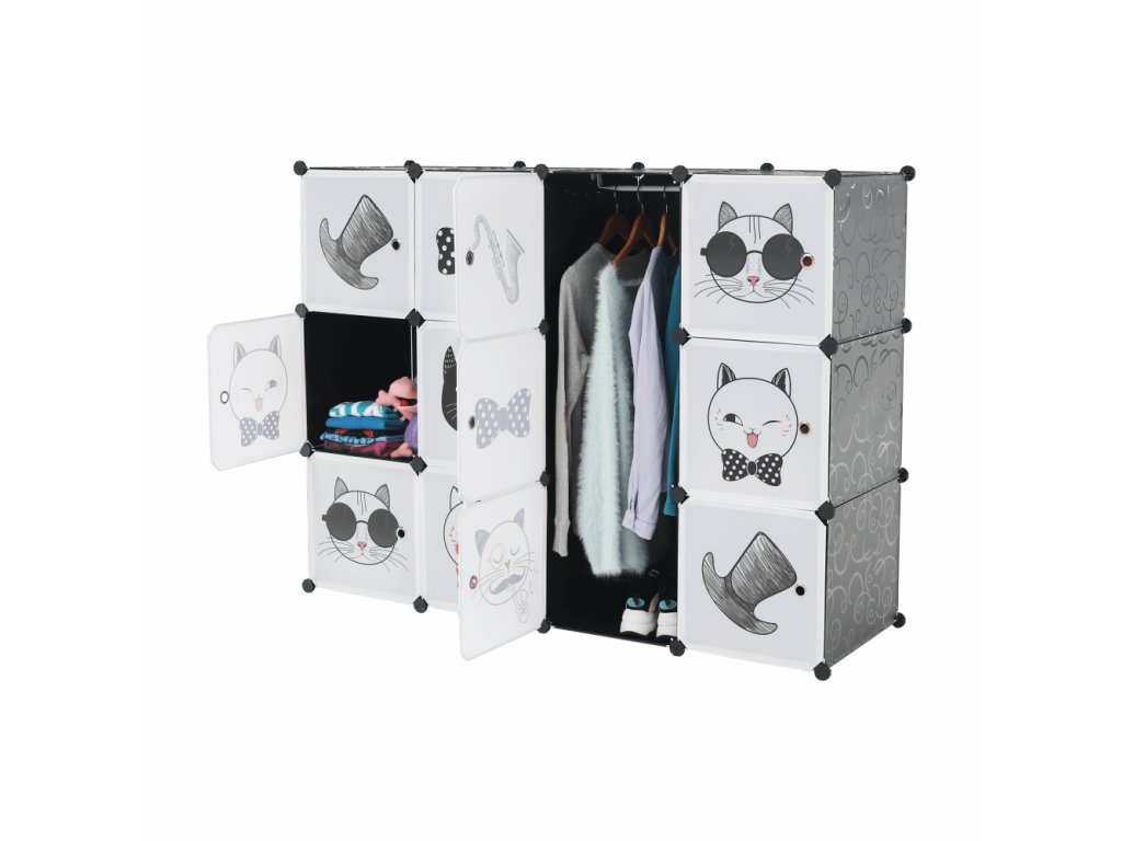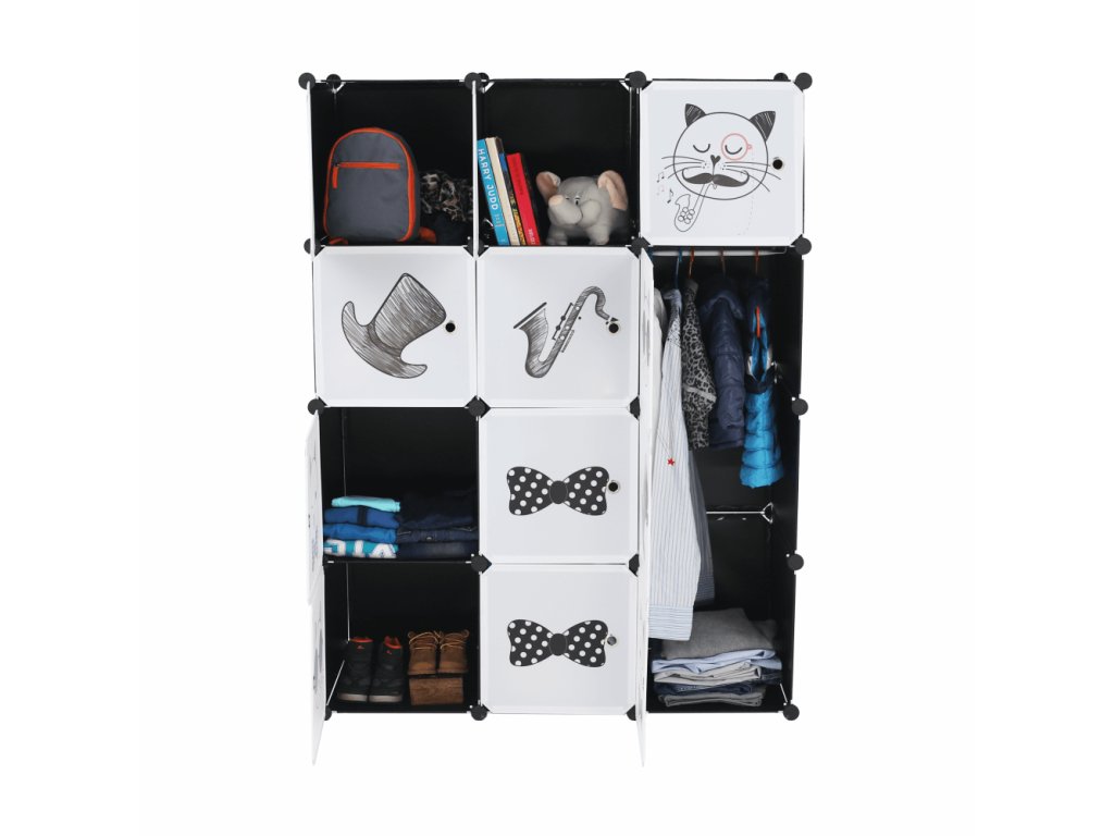 Výhodou modulárního typu nábytku je to, že si skříň můžete smontovat dle vlastních potřeb. Vnitřní rozložení skříně nemusí být takové jako na obrázku, věšákovou i policovou část si umíte rozvrhnout podle toho, jak právě potřebujete.