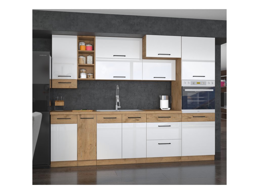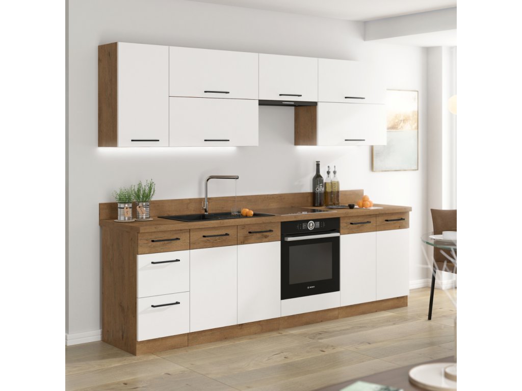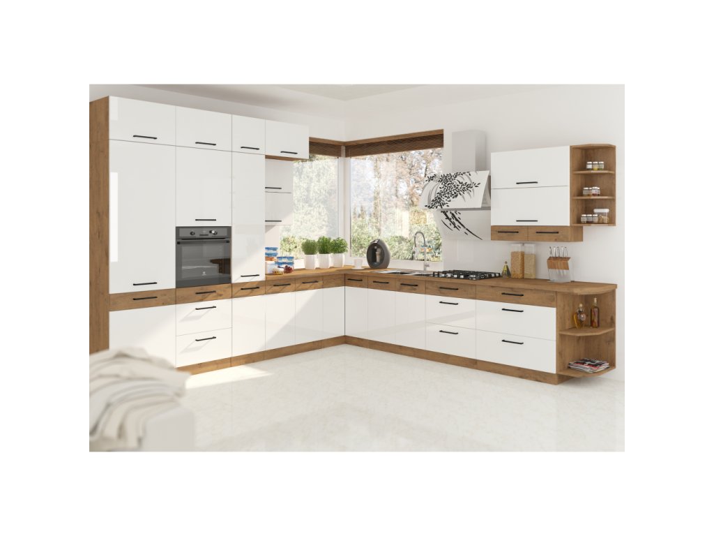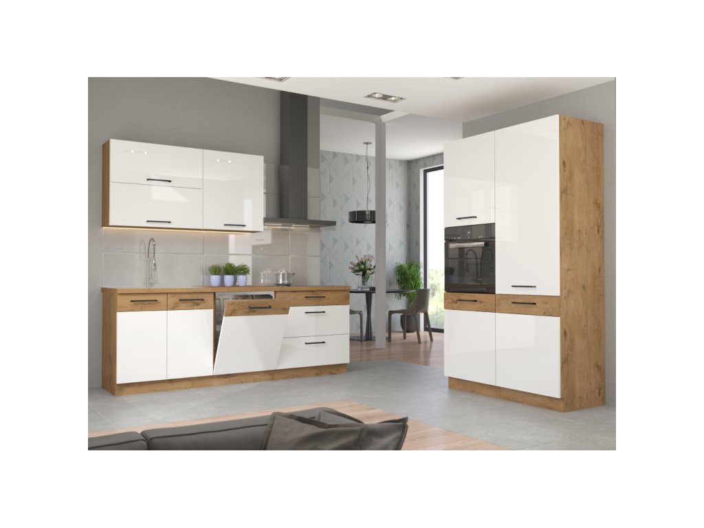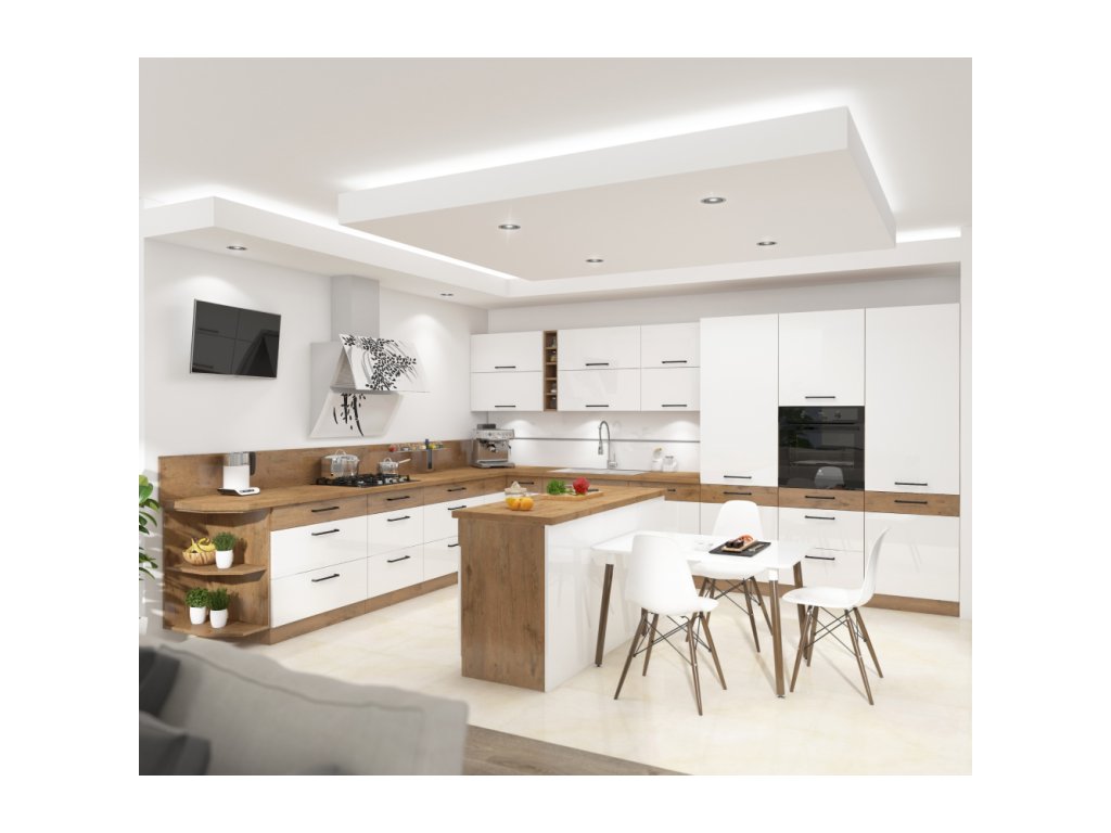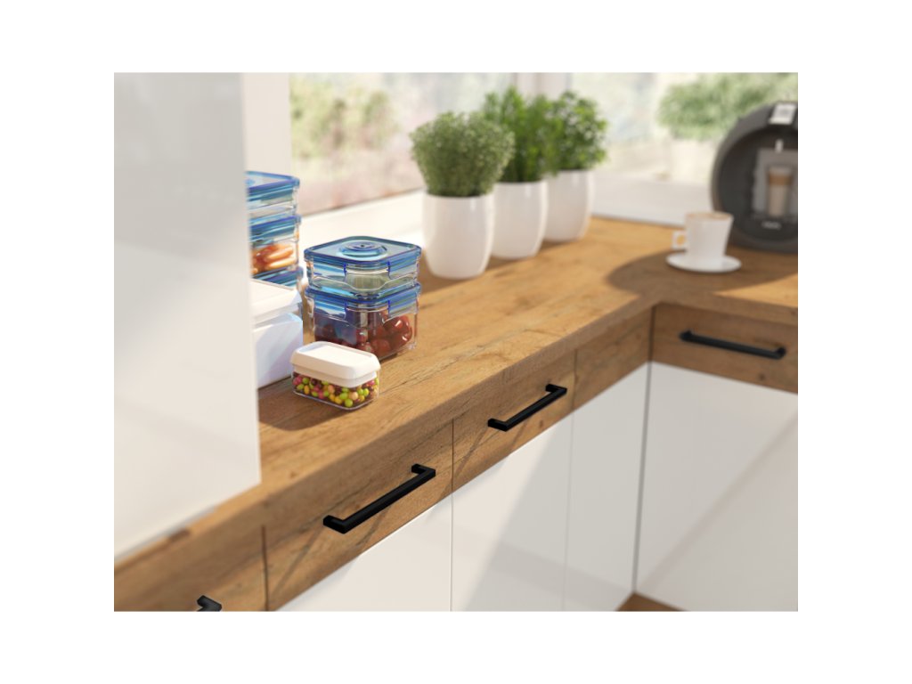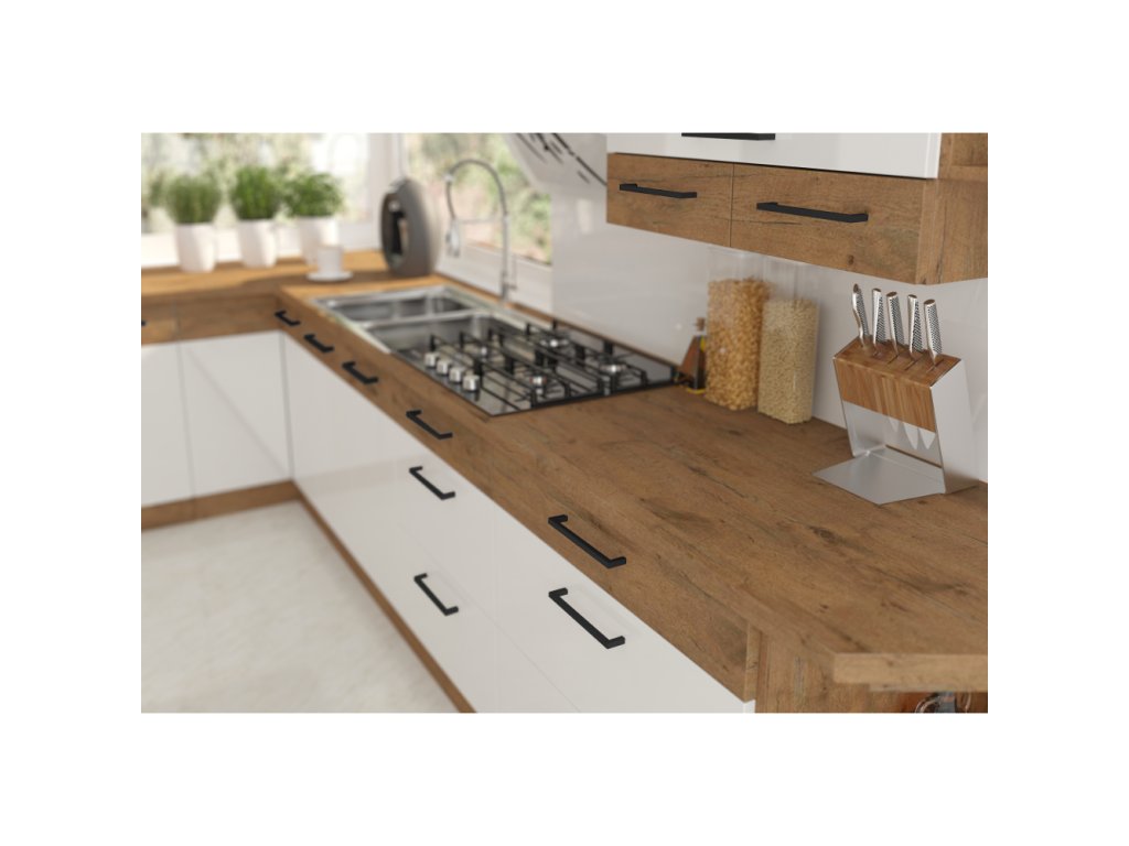 Spodní skříňky jsou dodávány včetně dolní lišty, bez pracovní desky. Možnost dokoupit pracovní desku dub lancelot v ceně: 1.290, - Kč / m. Možnost dokoupit univerzální L / P dřez LAY ON.