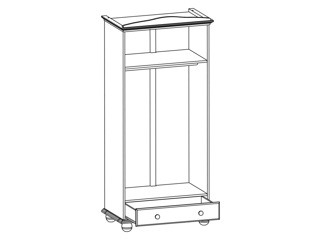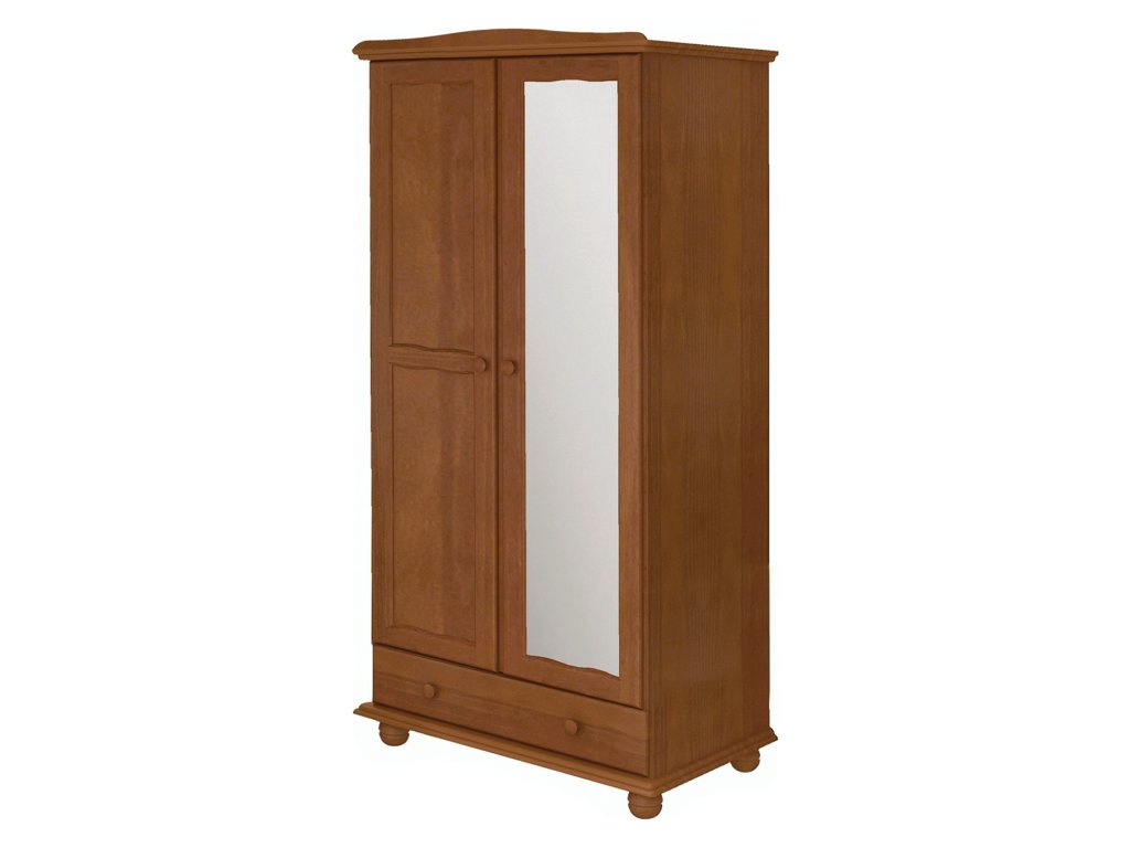 materiál masiv borovice, barevné provedení hnědý lak, šatní tyč a police, na pravých dveřích zrcadlo v dolní části 1 zásuvka s kovovými pojezdyDoplňkové parametry