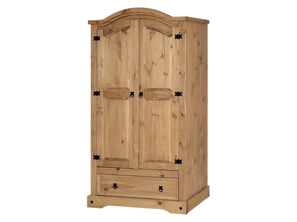 Materiál masiv borovice voskovaná v medovém odstínušatní skříň s šatní tyčí a policí na klobouky 1 široká zásuvka