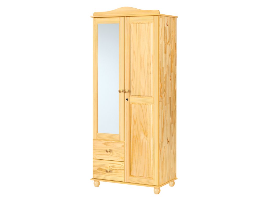 materiál masiv borovice, lakované provedení, prostor dělený na poloviny, v pravé části 4 police v levé části dveře se zrcadlem, kovová šatní tyč, 2 zásuvky s kovovými pojezdyDoplňkové parametry