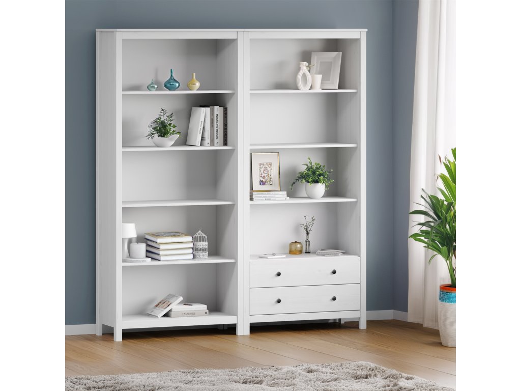 materiál masiv borovice, barevné provedení bílý lak kovové úchytky tři police, dvě zásuvky s kovovými pojezdyDoplňkové parametry