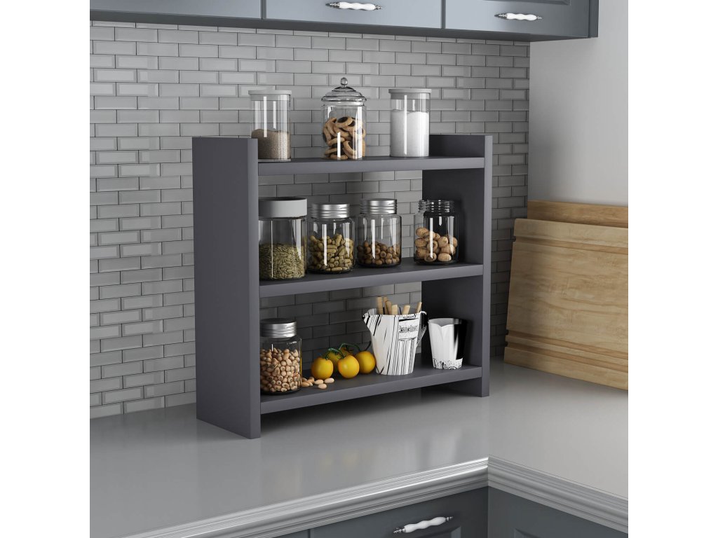 Police je dodávána v demontovaném stavu s přiloženým návodem na snadné sestavení. Její moderní antracitová barva dodá vaší kuchyni elegantní a stylový vzhled. Tato police je skvělým doplňkem pro každou kuchyni, kde oceníte její praktičnost a jednoduchý design.