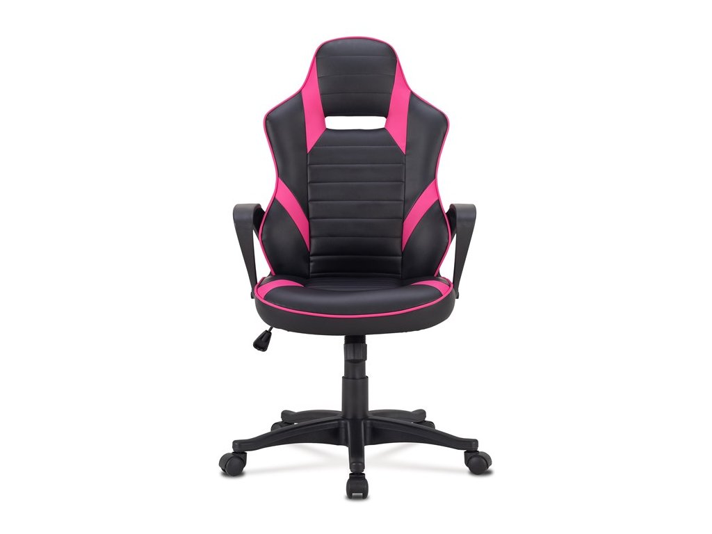 Elegantní a výrazně sportovní kancelářské křeslo v designu sedačky závodního vozu a zaoblenými liniemi. Má výborné ergonomické rozvržení. Potah je kombinací černé a trendy růžové ekokůže. Kostra je z ocelových ohýbaných trubek. Polstrování je z kvalitní PU pěny je zárukou pohodlného posezení při herních večerech. Ruce si můžete pohodlně položit na pevné plastové područky.Křeslo je vybaveno houpacím mechanismem. Síla houpání se reguluje plastovým šroubem pod sedákem. Výška sezení se upravuje páčkou na pravé straně přes kvalitní plynový píst. Masivní černý plastový kříž je osazen plastovými kolečky na koberec. Nosnost židle je 120 kg.