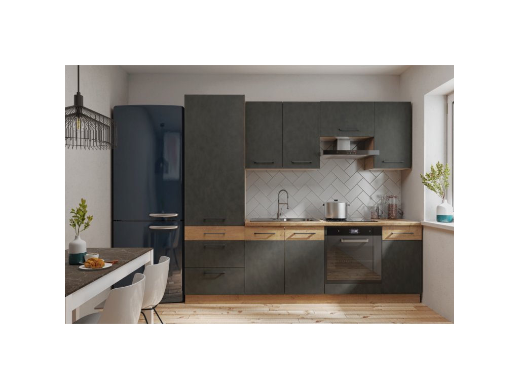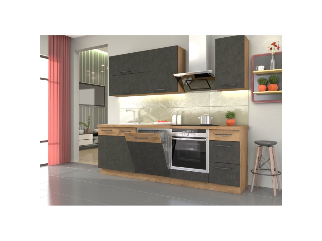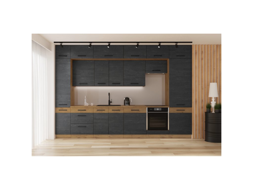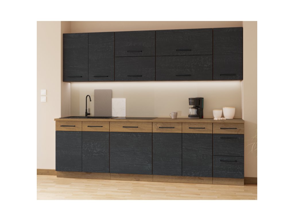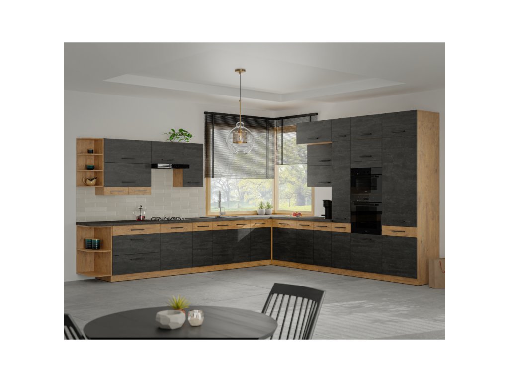 Spodní skříňky jsou dodávány včetně dolní lišty, bez pracovní desky. Možnost dokoupit pracovní desku dub lancelot v ceně: 1.360, - Kč / m. Možnost dokoupit univerzální L / P dřez LAY ON.
