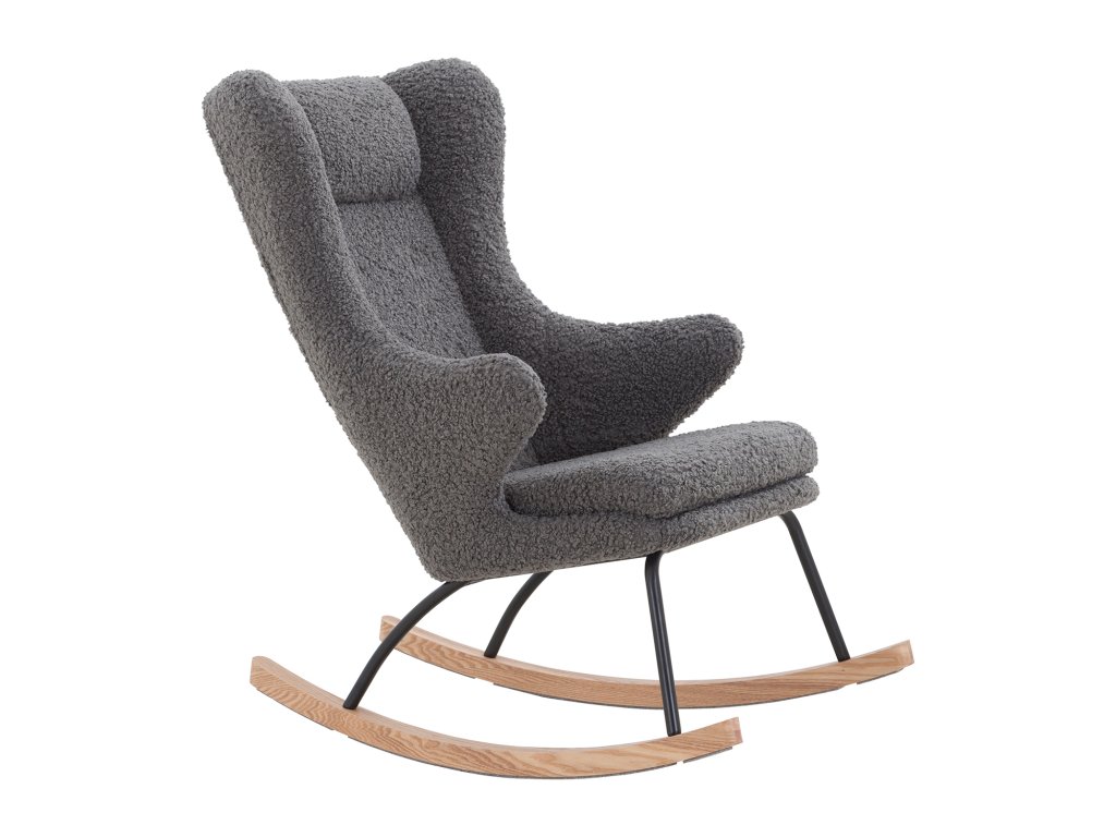 Pouze na objednání - dodání do 30 dnů, textilní potah, materiál plyš, 100% PES, barevné provedení šedá, nohy kov, barevné provedení černá, houpací část jasan s dubovou dýhou, výška sedu 50 cm, šířka sedu 50 cm, doporučená nosnost do 120 kg.Doplňkové parametry