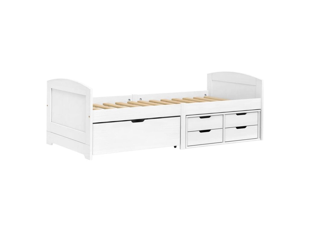 Jednolůžková postel MARY 8816B z masivní borovice v elegantním bílém laku zaujme nejen svým vzhledem, ale i praktičností. Díky dvěma prostorným zásuvkám pod postelí nabízí chytré řešení úložného prostoru. Součástí balení je také dřevěný laťkový rošt. Matrace není v ceně. Doporučený rozměr matrace je 90 × 200 cm.Specifikace: