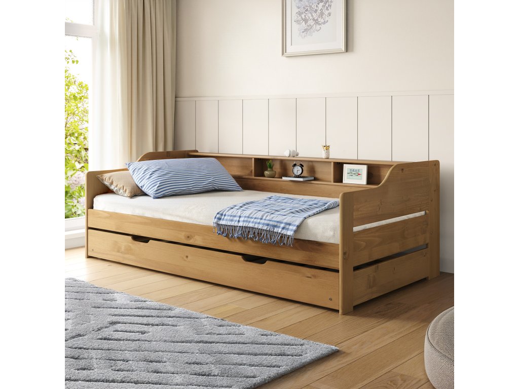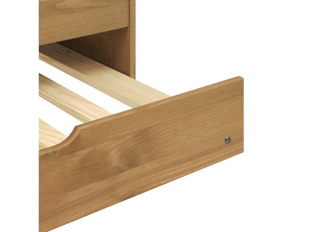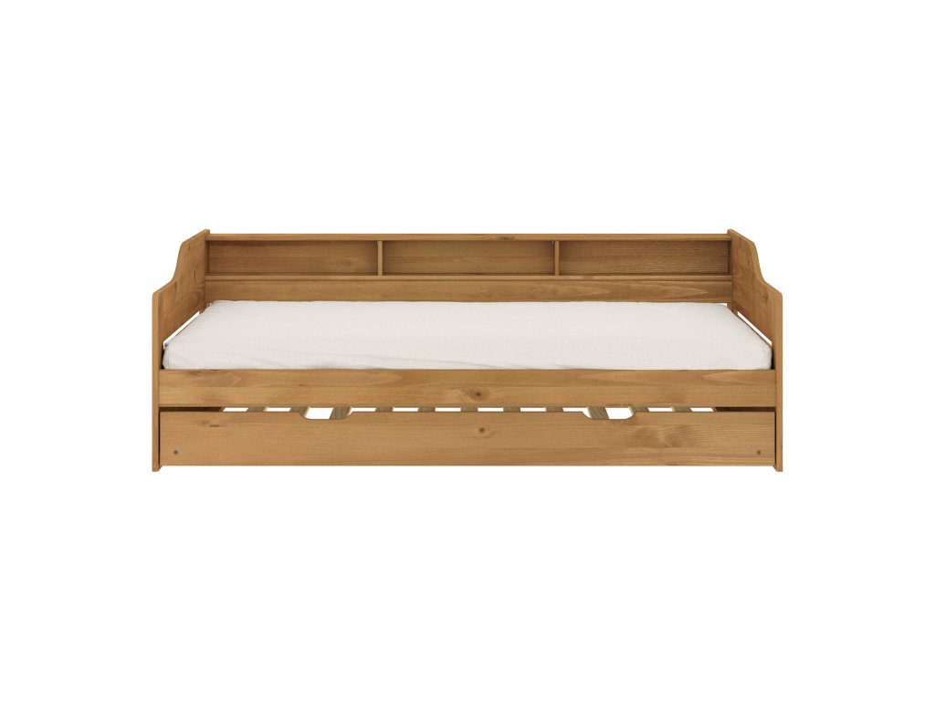 Jednolůžko LILI 8819V je praktická a stylová postel z masivní borovice, ideální do dětského nebo studentského pokoje i pro hosty. Povrch je voskovaný, což dodává dřevu přírodní vzhled a chrání ho před opotřebením.V zadní části postele najdete otevřenou polici, která poslouží jako odkládací prostor na knihy, dekorace nebo drobnosti. V dolní části je integrovaná výsuvná přistýlka, díky které snadno zajistíte pohodlné spaní pro hosty nebo sourozence.