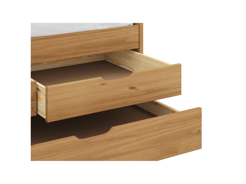 materiál masiv borovice voskovaná ,praktické úložné prostory pod postelí (3 zásuvky) v ceně, cena včetně roštu (dřevěný laťkový), matrace není v ceně, doporučený rozměr matrace 90 × 200 cm (M2, M5, M9, M12, M14, M24, M26) výsuv možno využít jako úložný prostor nebo jako přistýlku doporučená výška matrace pro přistýlku 10 cmDoplňkové parametry