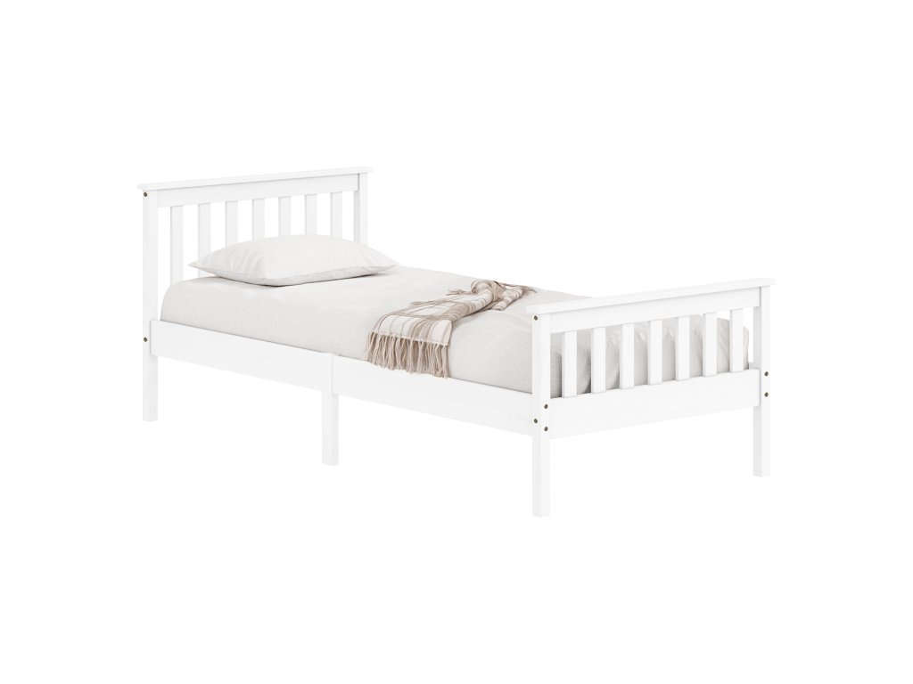 Jednoduché a elegantní jednolůžko z masivní borovice v bílém laku, které se hodí do dětského pokoje, ložnice i na chatu. Postel je pevná, stabilní a její čistý design snadno sladíte s dalšími kusy nábytku. Součástí balení je dřevěný laťkový rošt. Matrace není v ceně.- Materiál: masiv borovice