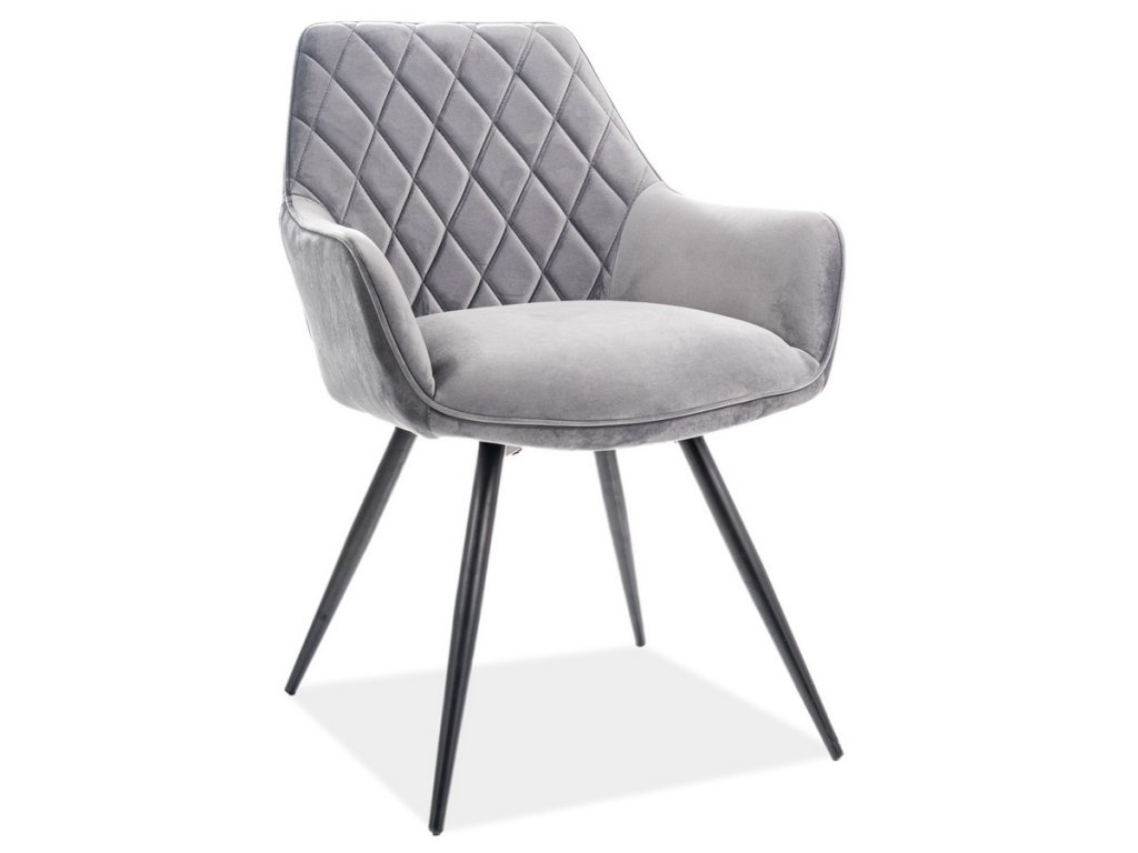 Elegantní čalouněná jídelní židle - křeslo. Konstrukce je z kovu černé barvy. Čalounění židle je z potahové látky ( aksamit 86 ) v granátově modré barvě. Dodáváme v demontovaném stavu.Doplňkové parametry