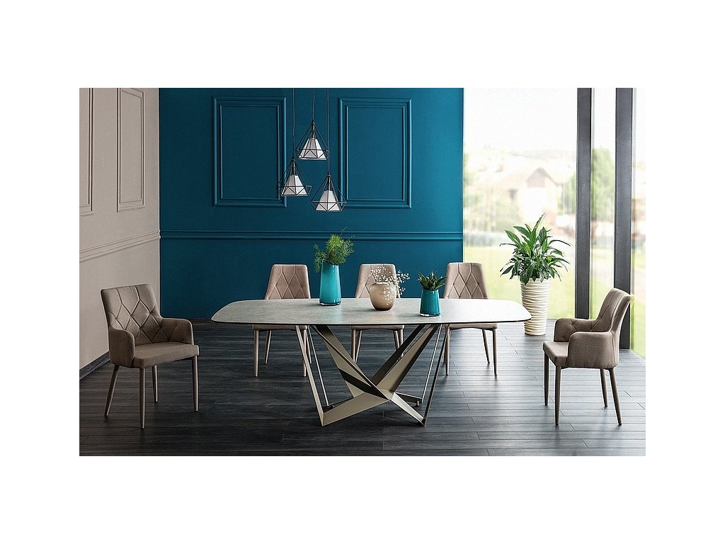 Jídelní stůl v moderním stylu zaujme svým originálním tvarem a bude ozdobou každého interiéru. Deska stolu je vyrobena z kvalitní přírodní dýhy v barvě dub, nohy stolu jsou z...