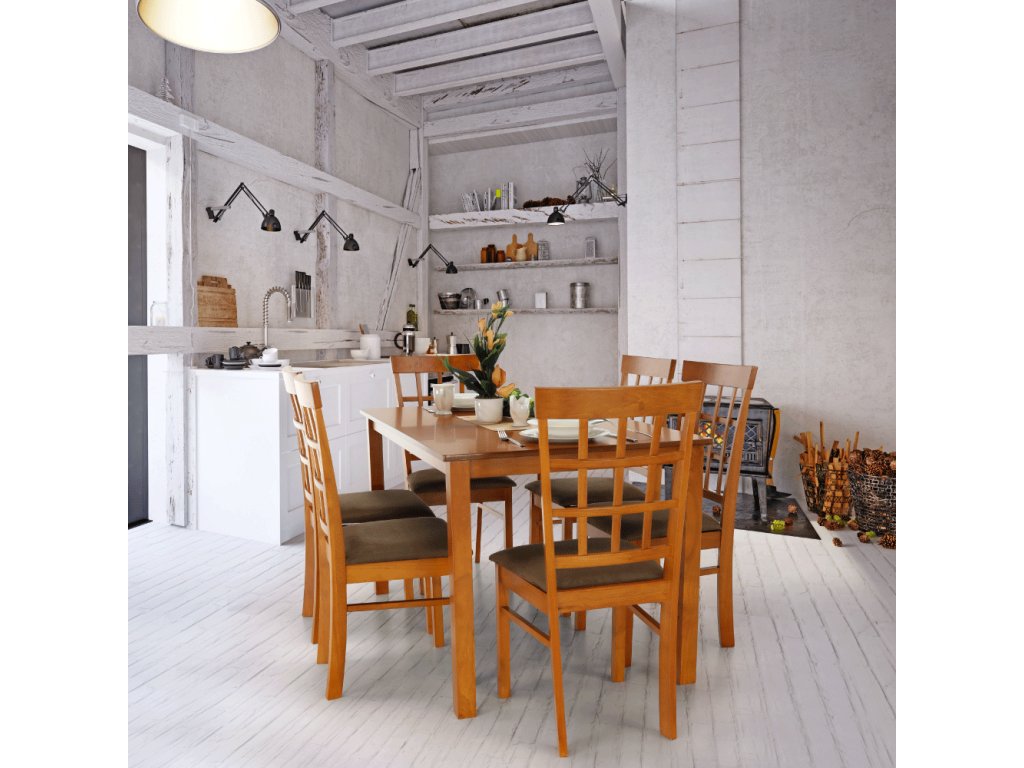 Jídelní komplet 1 + 6 GRID NEWMateriál: MDF dýhovaná / dřevo / látka