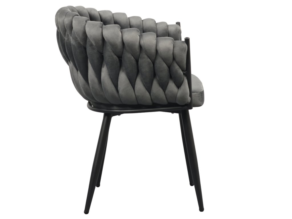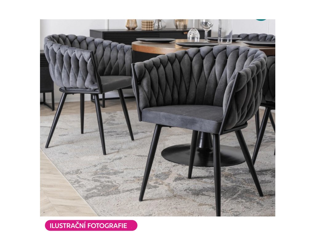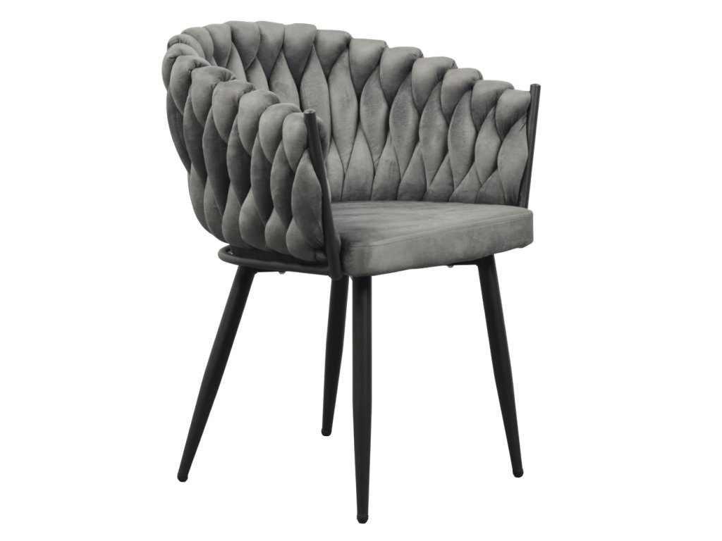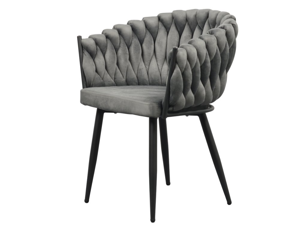 Jídelní křeslo BLER v tmavě šedém Velvet potahu zaujme netradičním prošíváním a pohodlným sezením. Odolné látce neublíží ani časté používání (80 000 oděrů).Parametry: