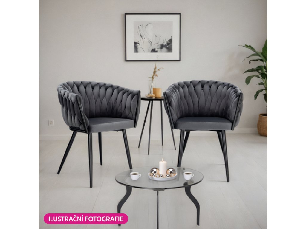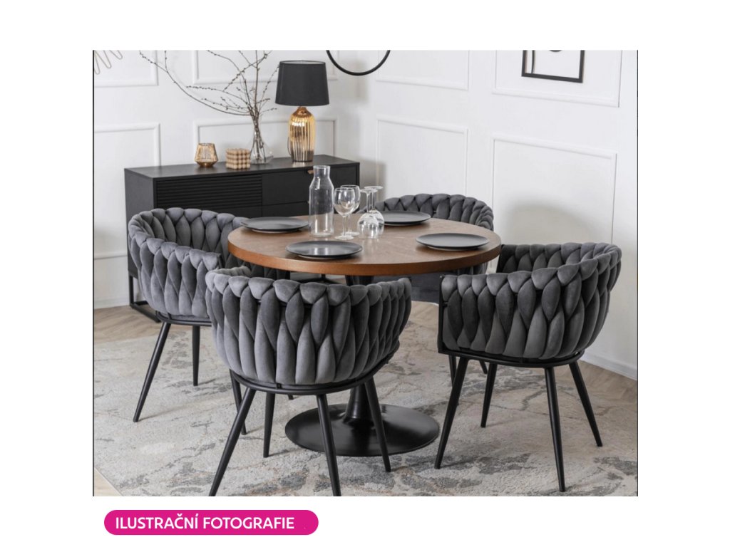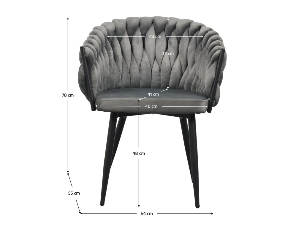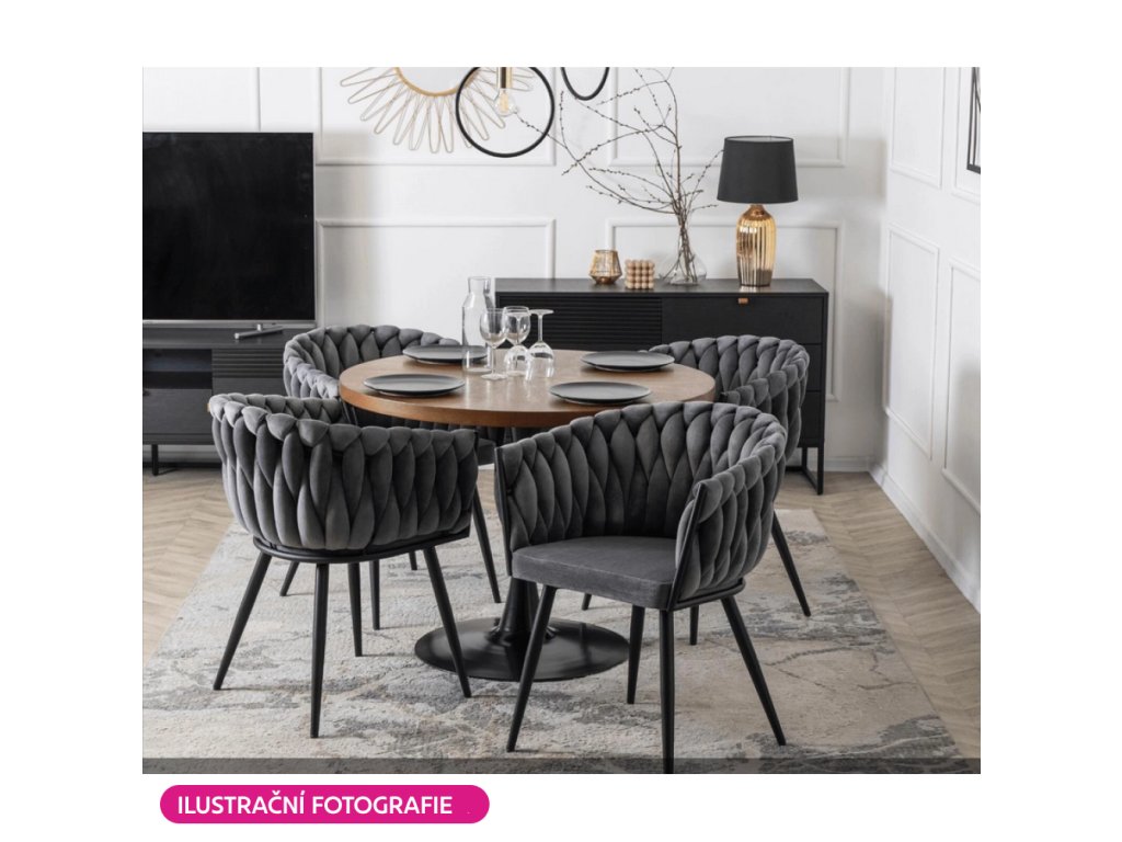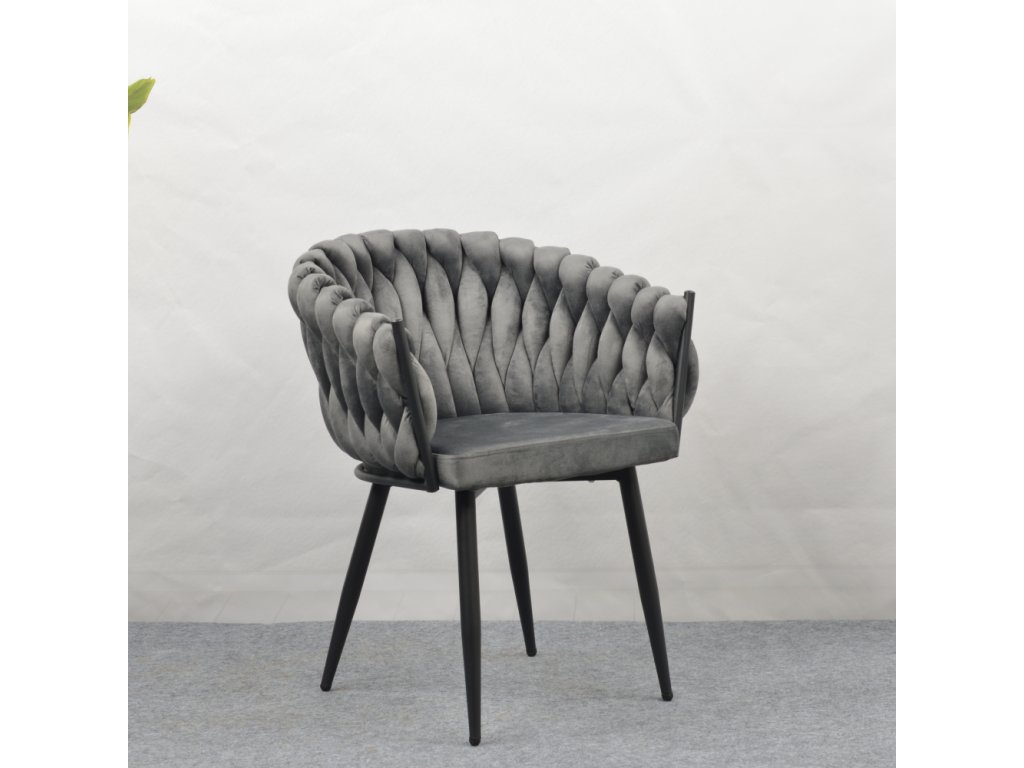Jídelní křeslo BLER v tmavě šedém Velvet potahu zaujme netradičním prošíváním a pohodlným sezením. Odolné látce neublíží ani časté používání (80 000 oděrů).Parametry: