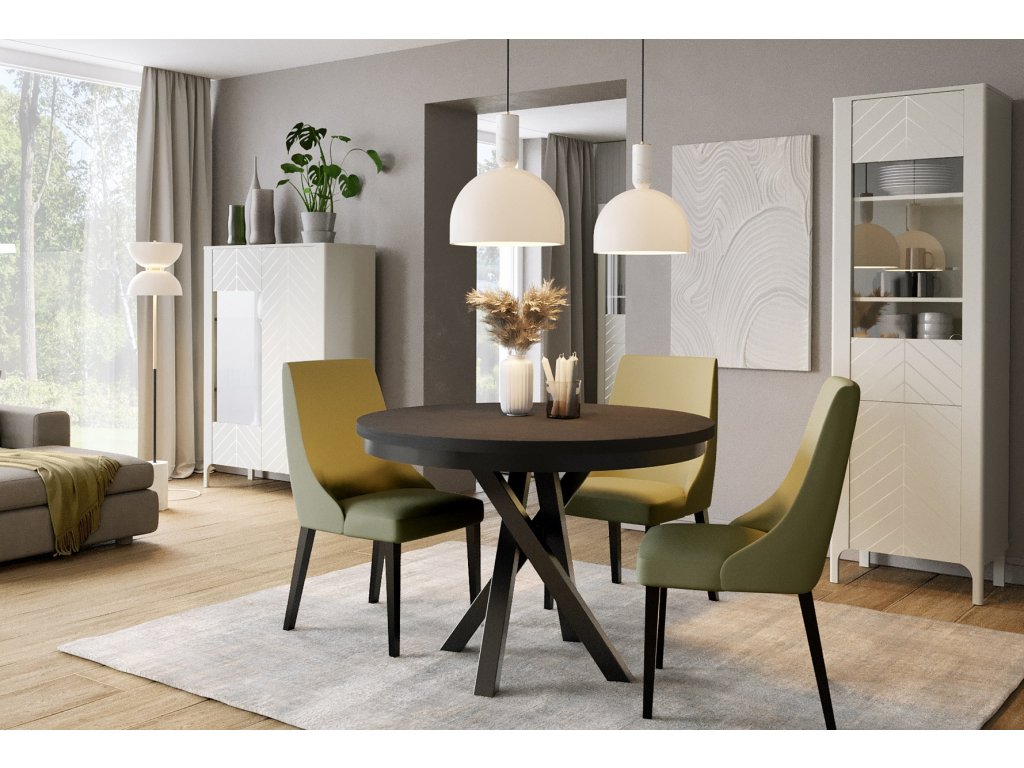 Rozkládací stůl KENORA v barvě kašmír zaujme kulatou deskou (Ø 100 cm), kterou lze rozložit na 140×100 cm.- Materiál: odolná MDF s ABS hranami