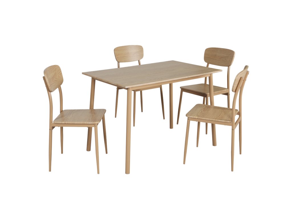 Jídelní set LAMIR pro 4 osoby v přírodním dubovém dekoru v sobě spojuje MDF a kov pro dlouhou životnost a moderní vzhled.• Rozměry stolu: 110x70x76 cm