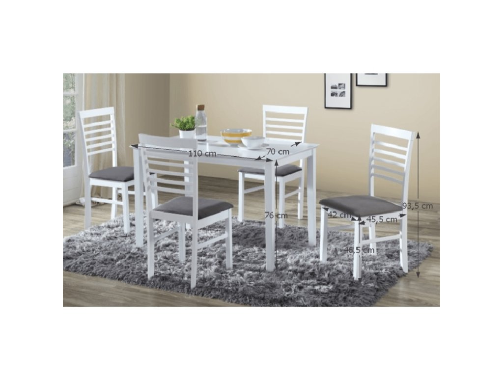 Rozměry (ŠxHxV): stůl: 110 x 70 x 76cm, stolička: 42 x45,5 x 93,5 cm, výška sedu: 46,5cm.