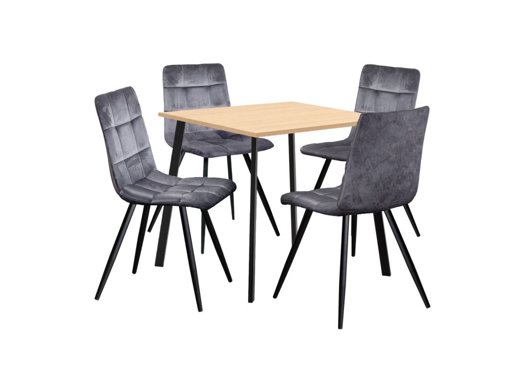 Jídelní stůl 80x80 BERGEN dub + 4 židle BERGEN šedý samet 4554