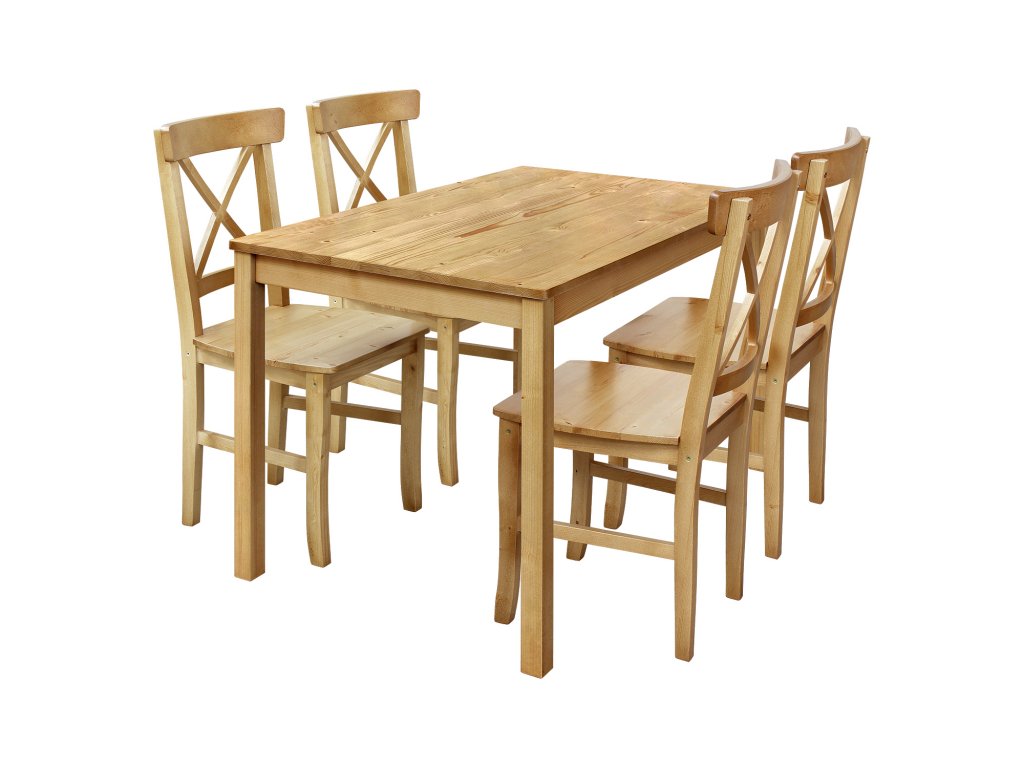 jídelní stůl 8848A a 4 židle 867A materiál masiv borovice, lakované provedení v tónu antik výška sedu židle 45,5 cm rozměr stolu (š/h/v): 118 × 75 × 73 cm rozměr židle (š/h/v): 42 × 42 × 91 cmDoplňkové parametry