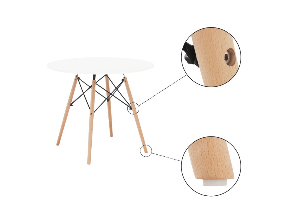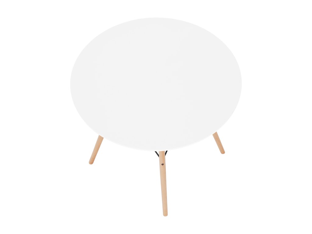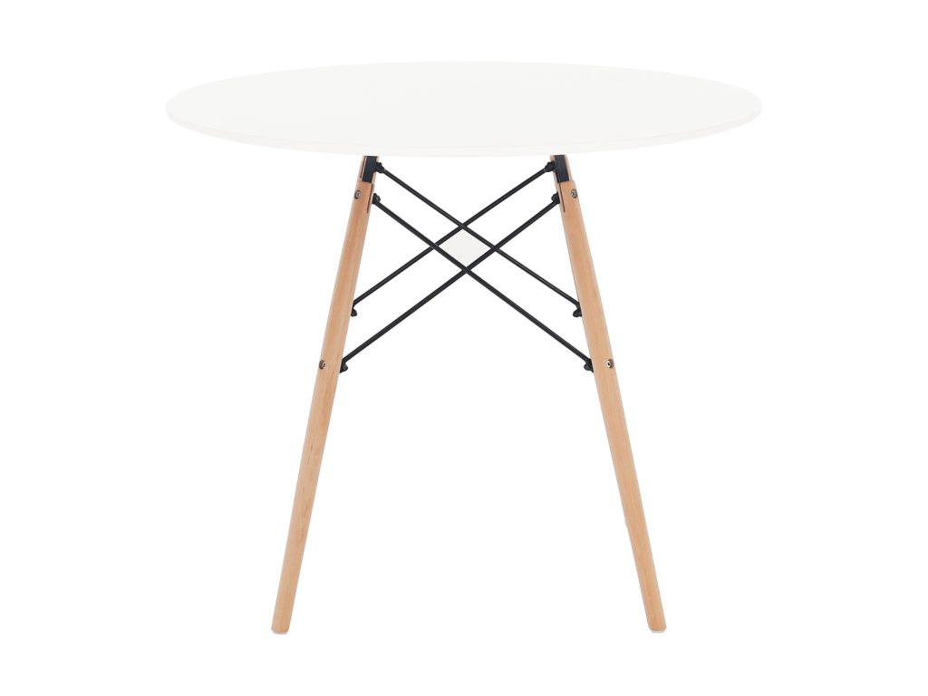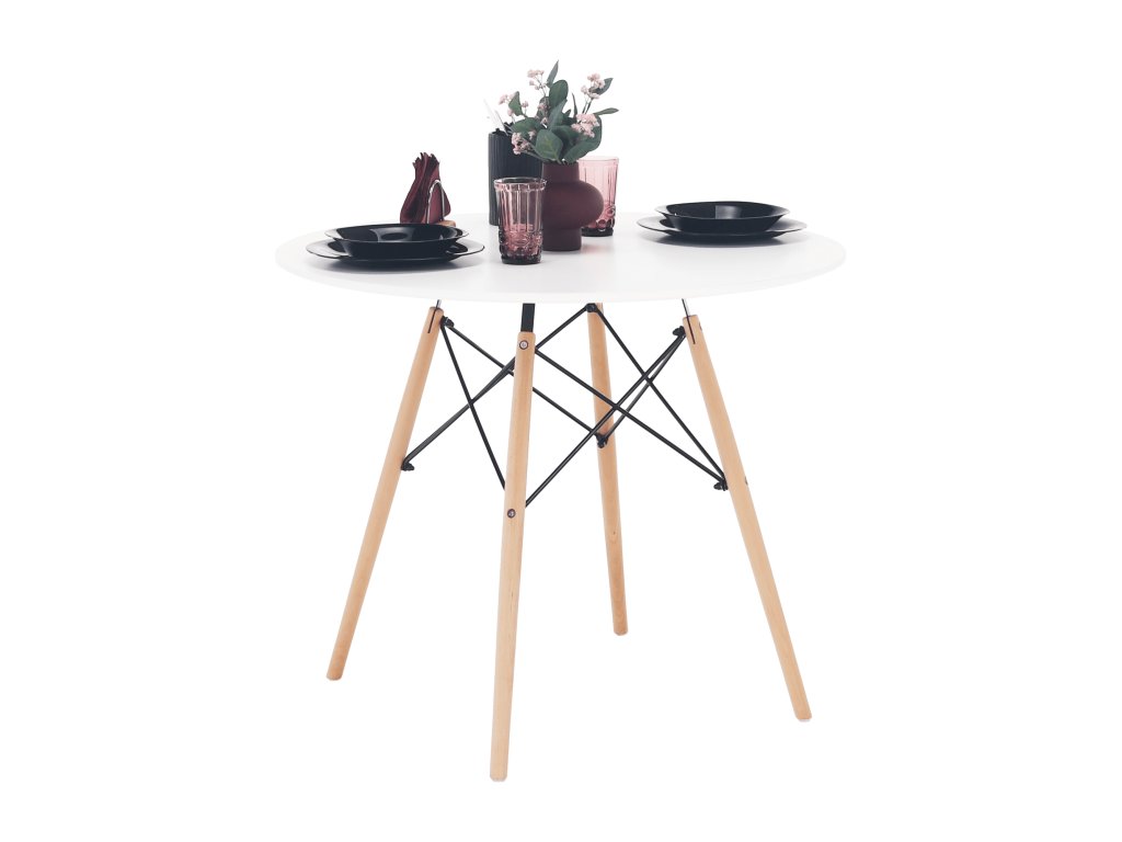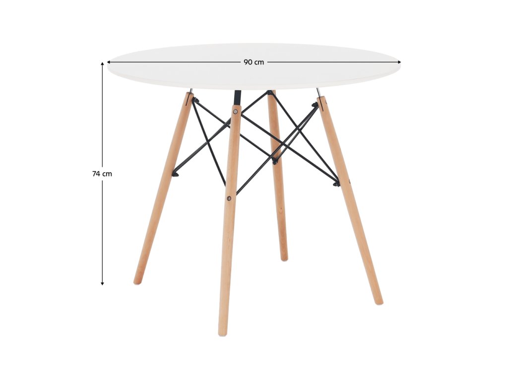 Jídelní stůl GAMIN 2 NEW v barvě buk/bílá spojuje MDF desku s pevnými dřevěno-kovovými nohami.Průměr 90 cm, výška 74 cm – ideální pro 2–4 osoby. Dodává se v demontu.