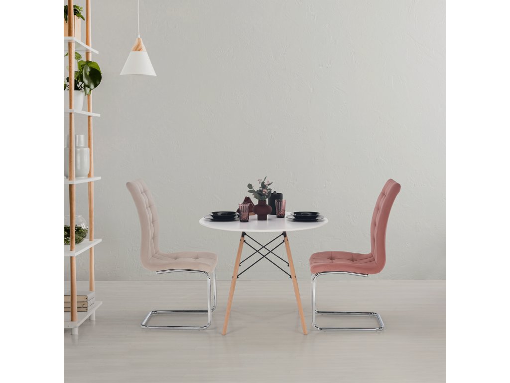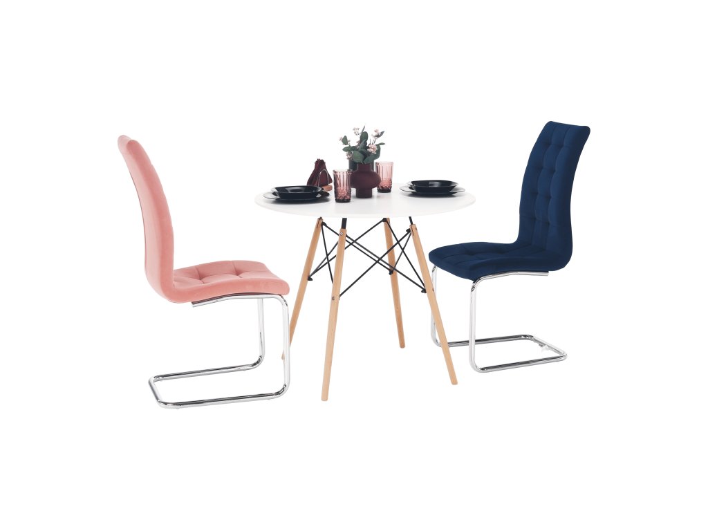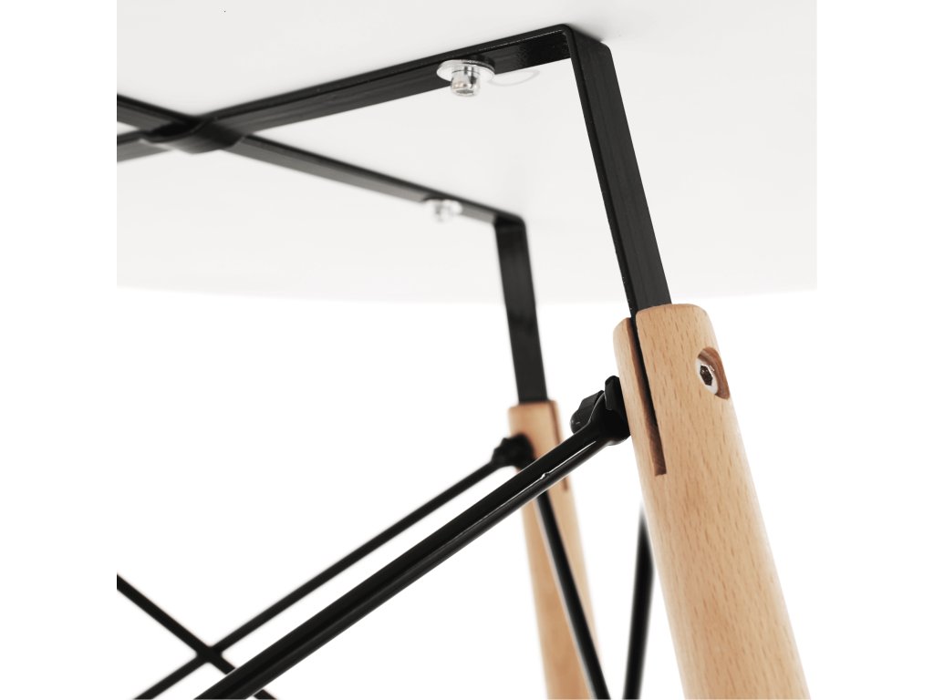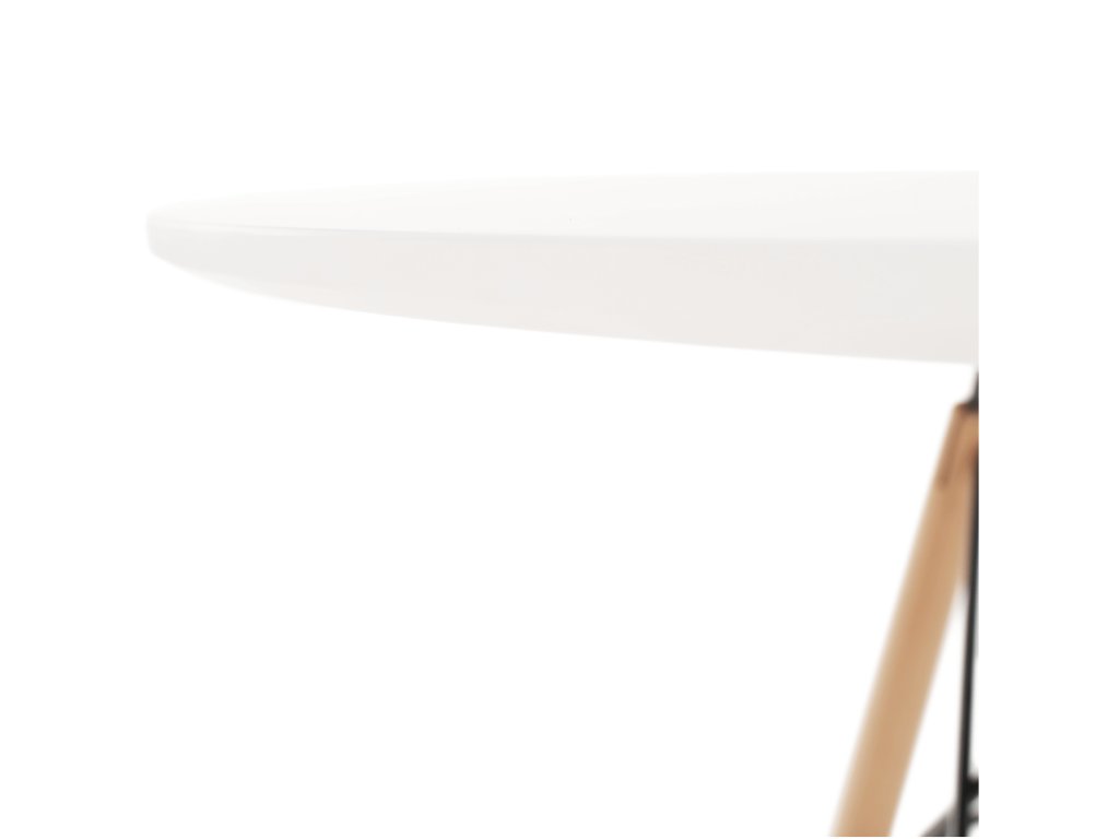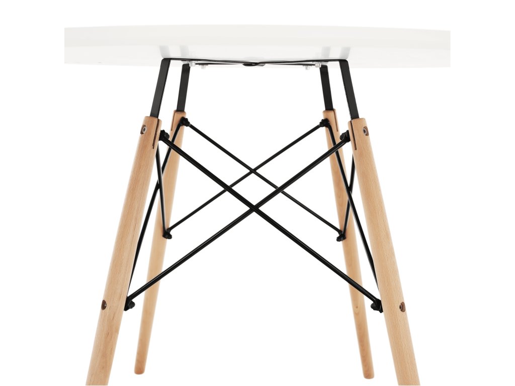 Jídelní stůl GAMIN 2 NEW v barvě buk/bílá spojuje MDF desku s pevnými dřevěno-kovovými nohami.Průměr 90 cm, výška 74 cm – ideální pro 2–4 osoby. Dodává se v demontu.