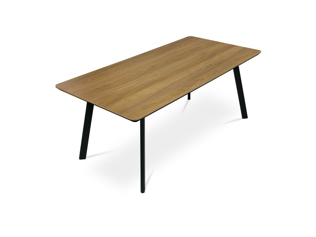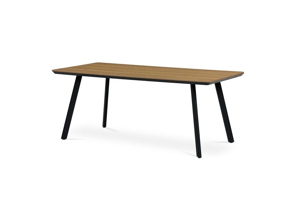 Vstupte do světa moderního luxusu s naším jídelním stolem Autronic. Stůl, který je harmonickou kombinací industriálního stylu a elegantního designu, má sytě hnědou dýhovou desku, která napodobuje okouzlující vzory dubu. Obdélníkový tvar stolu nabízí dostatek prostoru pro všechny typy kanceláří nebo domácích jídelen a vytváří příjemnou atmosféru pro setkání a diskuse.Důraz na design se vztahuje i na robustní nohy zhmotněné z vysoce kvalitního kovu a natřené černou barvou, které tvoří výrazný kontrast k desce. Tento základ zaručuje stabilitu, což z něj činí odolnou volbu, která snadno odolá každodennímu používání.