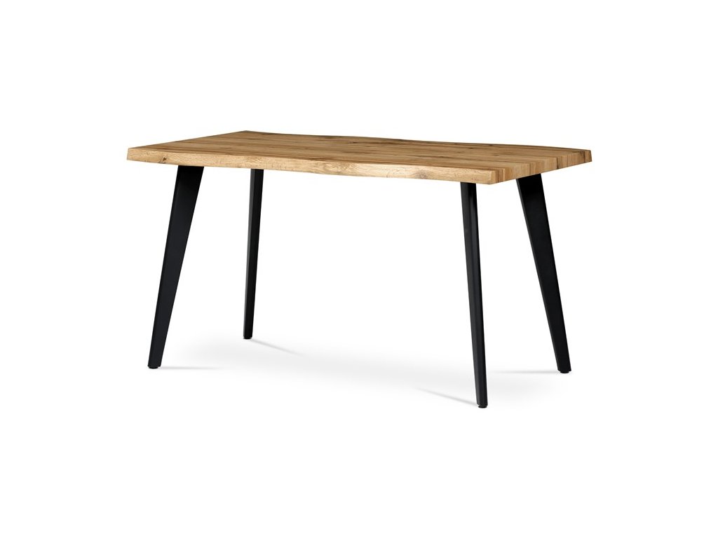 Jídelní stůl o rozměru 140 x 80 cm v dekoru divoký dub v kombinaci s černými kónickými kovovými nohami v rozích zaujme svým líbivým stylem i zpracováním. Je vyroben v minimalistickém designu, v kontrastu světlé desky a černého laku na nohách. Výborně se hodí nejen do industriálních, ale i moderních a klasicky laděných jídelen, kuchyní a obývacích prostor. Zde vynikne svojí elegancí.Čisté linie nastavují okouzlující akcenty a podtrhují útulnou atmosféru v interiéru. Tento jídelní stůl Vás zve nejen k odpočinku, ale i k setkávání s rodinou i přáteli ve svátečních i všedních okamžicích.