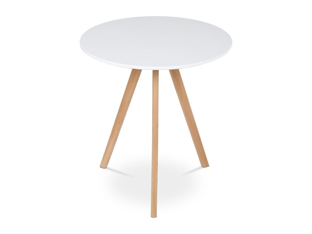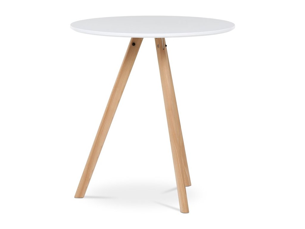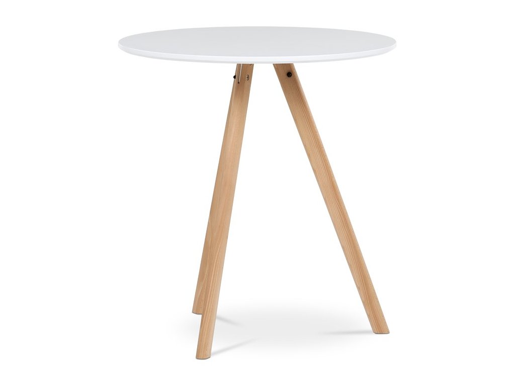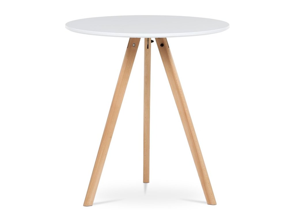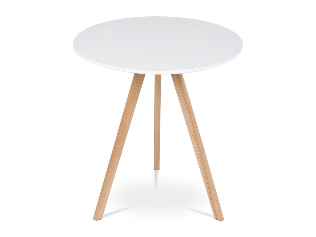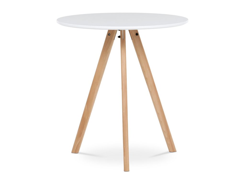 Tento stůl ve skandinávském stylu, vyrobený společností Autronic, v sobě spojuje minimalistickou eleganci s bezkonkurenční funkčností, takže je příkladnou volbou pro celou řadu prostředí od sofistikovaných kancelářských prostor až po útulné jídelny. Elegantní matně bílá povrchová úprava desky z MDF v kombinaci s podmanivým kulatým tvarem podporuje pocit otevřenosti a světla v každé místnosti. Jeho design nejen zvyšuje estetický dojem, ale také zajišťuje příjemnou atmosféru pro schůzky, jídla nebo neformální setkání.Základ tohoto nádherného kusu spočívá na třech nohách z masivního dřeva, které se vyznačují teplou hnědou barvou. Tento stabilní typ základny zajišťuje odolnost a spolehlivost, což jsou vlastnosti, které podniky při dlouhodobém používání velmi oceňují. Harmonické spojení nohou z masivního dřeva s horní deskou z MDF s matnou povrchovou úpravou navíc vnáší do interiéru nádech přírody a jemně zvyšuje pohodlí a klid každého obytného prostoru.