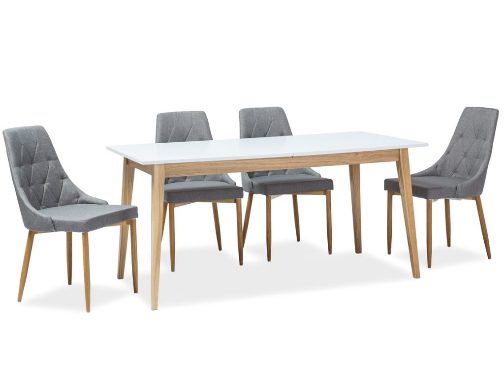 Moderní jídelní rozkládací stůl v elegantním a praktickém provedení. Nohy stolu jsou vyrobeny ze dřeva v barvě dub, deska stolu je z kvalitní LTD lakované bílou barvou odolnou proti oděru. Plocha stolu před rozložením je 68 x 120 cm, plocha stolu po rozložení je 68 x 165 cm. K tomuto stolu doporučujeme židle z naší nabídky. Dodáváme v demontovaném stavu.Doplňkové parametry