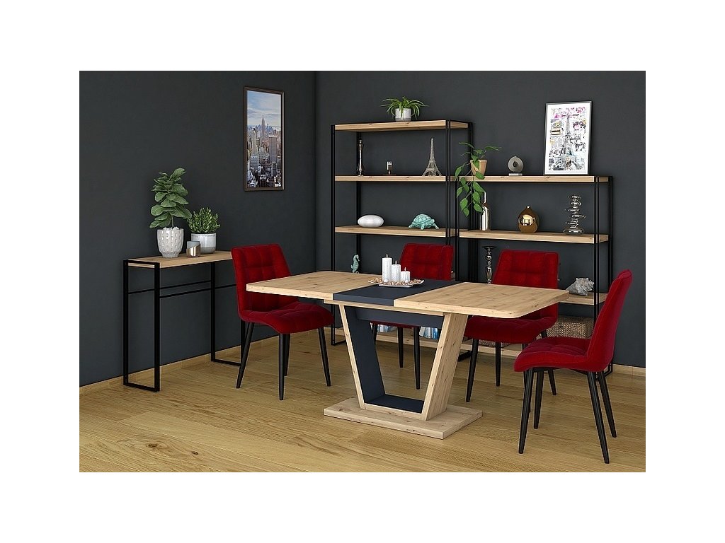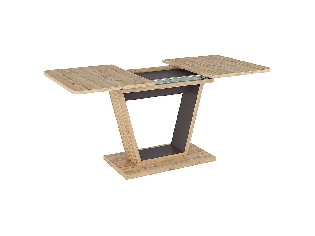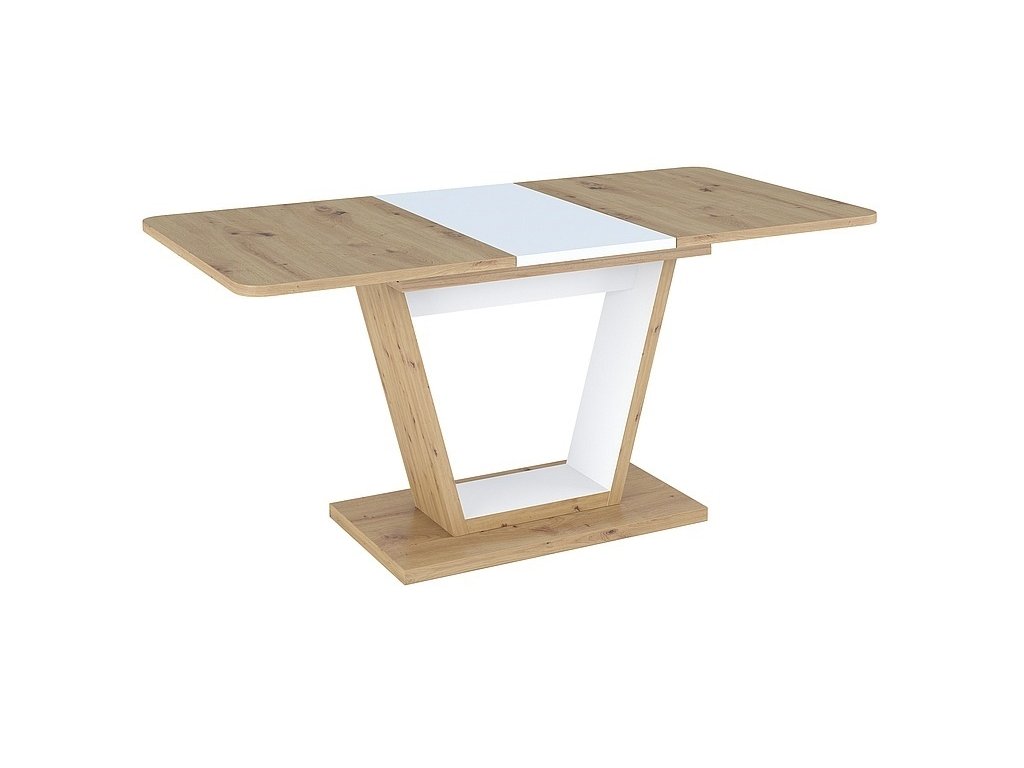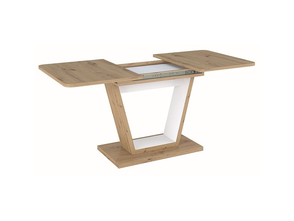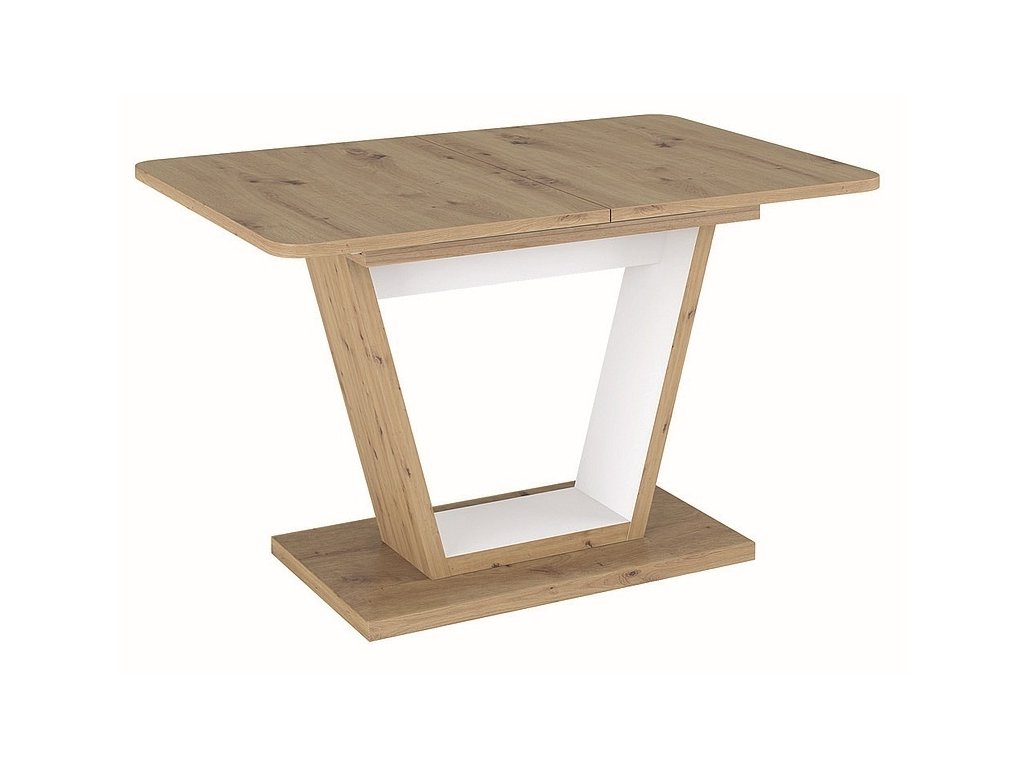 Rozkládací jídelní stůl, který zaujme svým elegantním tvarem a bude ozdobou každého interiéru. Stůl je vyroben z kvalitní LTD. Barevné provedení dub artisan / bílá mat. Plocha stolu před rozložením je 120 x 80 cm, plocha stolu po rozložení je 160 x 80 cm. K tomuto stolu doporučujeme židle v naší nabídce. Dodáváme v demontovaném stavu.Doplňkové parametry